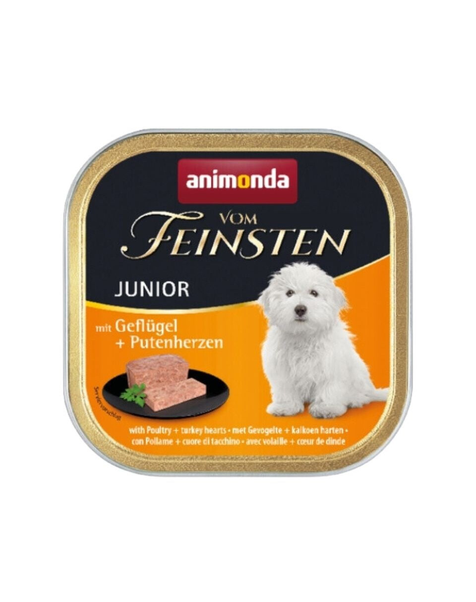 Animonda vom Feinsten Junior è un alimento per cani in pratiche ciotole per cuccioli a partire da circa 5 settimane di età e per cani giovani e in crescita con ingredienti speciali per razze di piccola taglia. Animona von Feinsten Junior contiene ingredienti speciali, studiati su misura per le esigenze dei cani giovani in questa fase difficile, ma allo stesso tempo molto importante, della crescita. Con l'aggiunta di minerali e vitamine per un inizio di vita ottimale e un valore energetico superiore. Animonda vom Feinsten Junior per cuccioli - alimento a base di tipi di carne selezionati e deliziosamente gustosi. Costantemente privo di coloranti e conservanti.