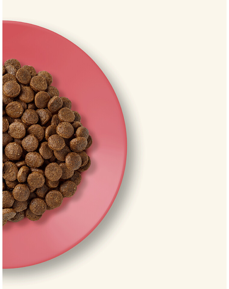 Composizione: Pollo 44% (farina di pollo 41%, pollo appena preparato* 3%), patate*, grasso di pollame 8%, farina di anatra 4%, polpa di barbabietola*, lievito di birra essiccato*, vitamine e minerali, salsa di pollame 1,5%, uova in polvere *, olio di salmone, estratto di cicoria* 0,2% (fonte di FOS prebiotici), alghe marine*, yucca*, polvere di mirtillo rosso. *Ingredienti naturali.