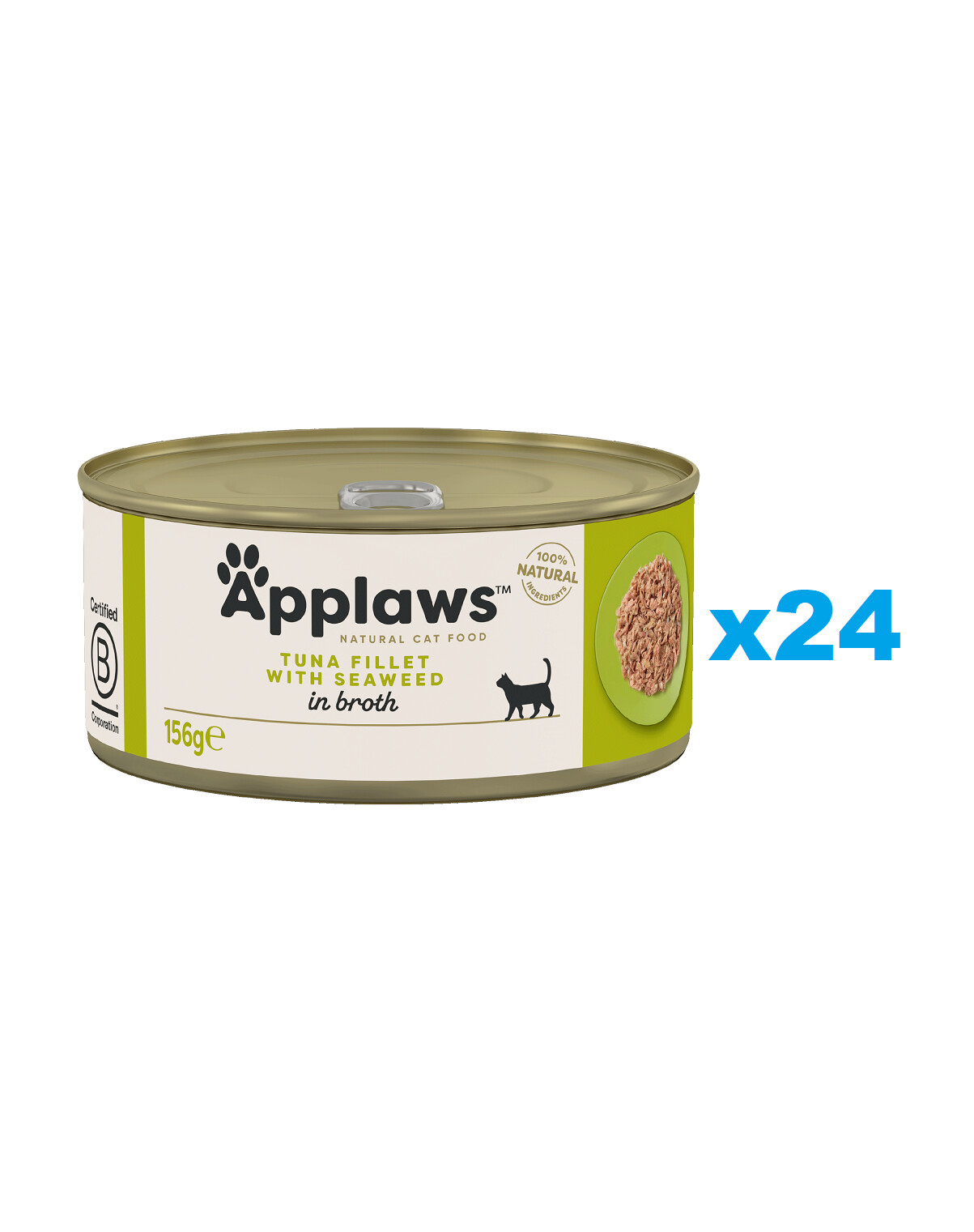Filetto di tonno 70%, riso 1%, alghe 5%, brodo di pesce 24%. Senza additivi.