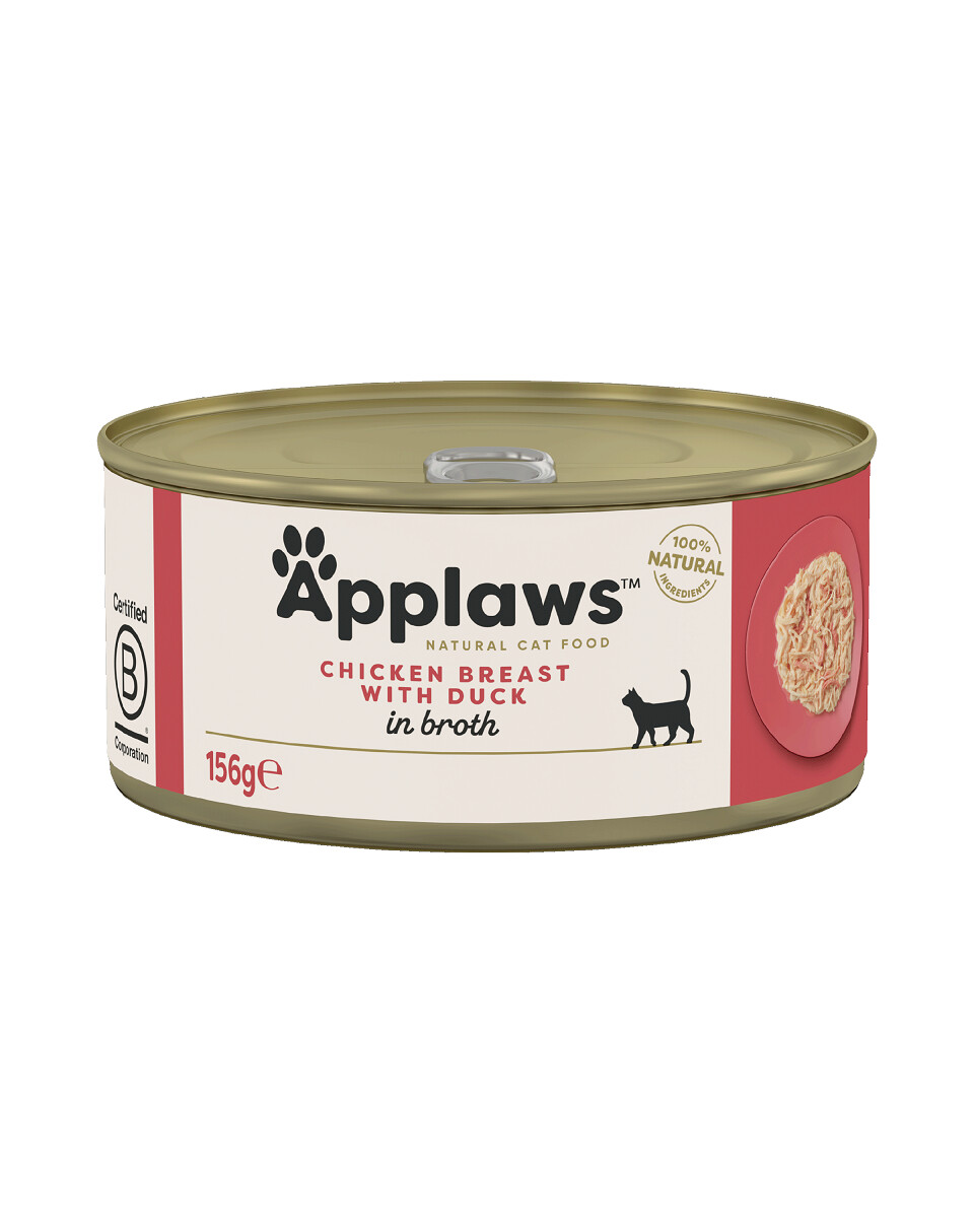 Petto di pollo 70%, Anatra 5%, Riso 1%, Brodo di pollo 24%.
