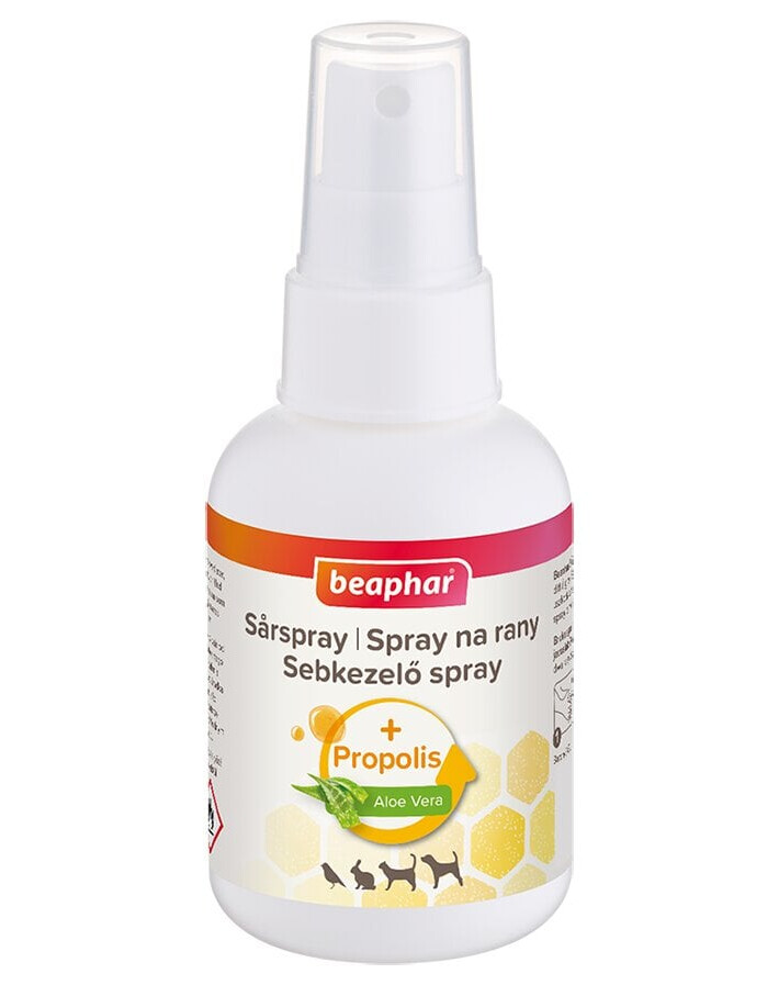 Beaphar Wound Spray è un preparato delicato destinato alla pulizia e alla cura di piccole ferite, graffi, abrasioni e morsi per tutte le specie di animali domestici – cani, gatti, conigli, roditori, uccelli e cavalli. Grazie alla presenza di ingredienti naturali, supporta il processo di guarigione e previene le infezioni. Contiene propoli e aloe, ideale per lenire la pelle dopo il morso di una zecca o di un insetto.