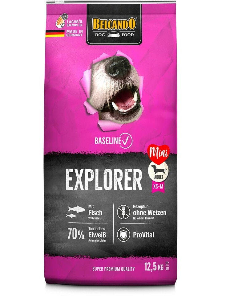 Proteine di pollame, essiccate (16%); Mais; Farina di avena da foraggio; Farina di piselli; Farina di pesce marino (8%); Mais macinato; Grasso di pollame; Polpa di barbabietola essiccata, desugata; Farina di fagioli (Vicia faba); Lievito di birra, inattivato, essiccato (2,5%); Carrube, essiccate; Olio di salmone (1. 5%); Fegato di pollame idrolizzato; Fosfato bicalcico; Semi di lino (1,1%); Cloruro di sodio; Cloruro di potassio; Erbe, essiccate (foglie di ortica, radice di genziana, centaurea, camomilla, finocchio, carvi, vischio, achillea, foglie di mora) (0,2%); Yucca schidigera (0,025%).
