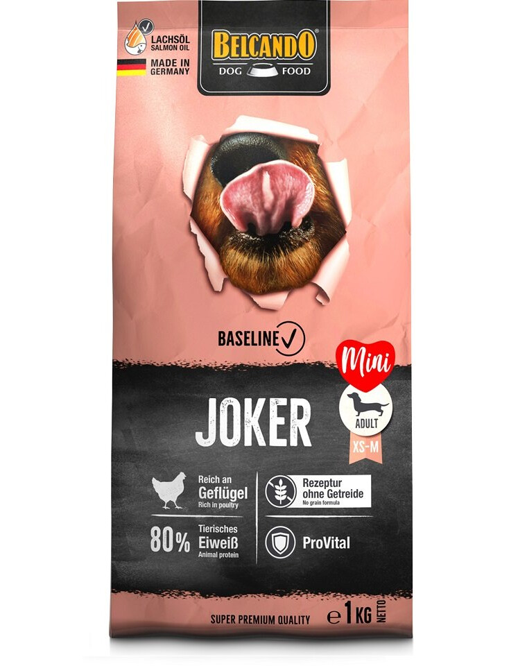 Proteine di pollame, essiccate (27%); fecola di patate; farina di piselli; grasso di pollame; farina di fagioli (Vicia faba); polpa di barbabietola essiccata, dissociata; farina di pesce marino; lievito di birra, inattivato, essiccato (2,5%); pane di robinia, essiccato; olio di salmone (1,5%); fegato di pollame, idrolizzato; fibra di pisello; semi di lino (1,1%); cloruro di sodio; cloruro di potassio; erbe, essiccate (foglie di ortica. Radice di genziana. Centaurea. Camomilla. Finocchio. Carvi. Vischio. Achillea. Foglie di mora) (0,2%); Yucca schidigera (0,025%).