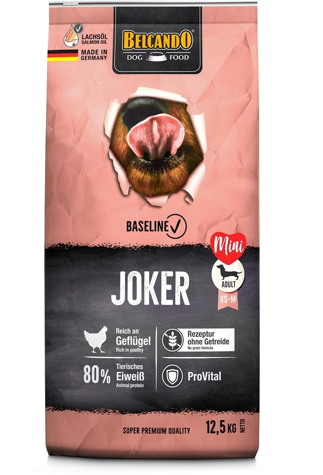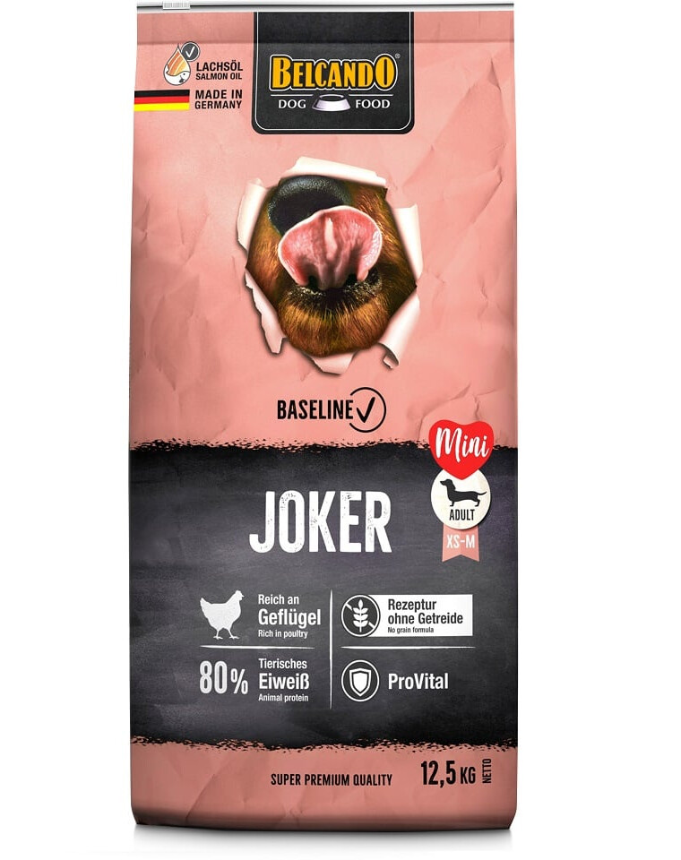Proteine di pollame, essiccate (27%); fecola di patate; farina di piselli; grasso di pollame; farina di fagioli (Vicia faba); polpa di barbabietola essiccata, dissociata; farina di pesce marino; lievito di birra, inattivato, essiccato (2,5%); pane di robinia, essiccato; olio di salmone (1,5%); fegato di pollame, idrolizzato; fibra di pisello; semi di lino (1,1%); cloruro di sodio; cloruro di potassio; erbe, essiccate (foglie di ortica. Radice di genziana. Centaurea. Camomilla. Finocchio. Carvi. Vischio. Achillea. Foglie di mora) (0,2%); Yucca schidigera (0,025%).
