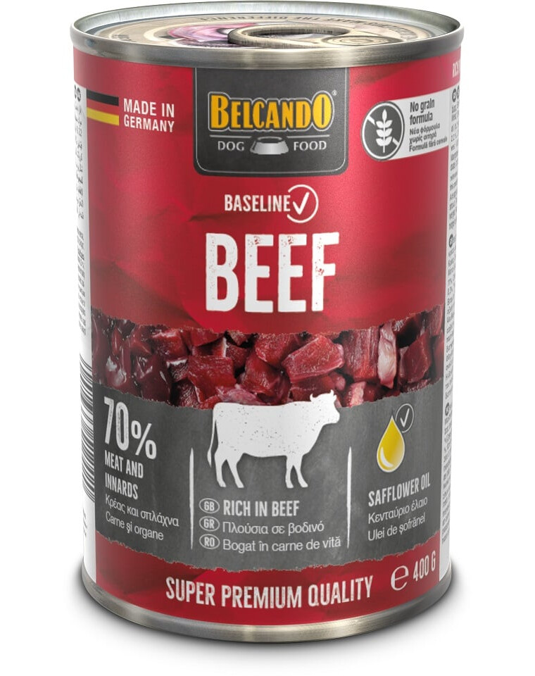 Manzo, polmoni, cuore, milza, mammella (26%); Brodo di carne (28,8%); Carne; Fegato; Stomaco; Cuore; Reni; Polmoni; Gusci d'uovo, essiccati; Minerali; Olio di cartamo (0,2%)