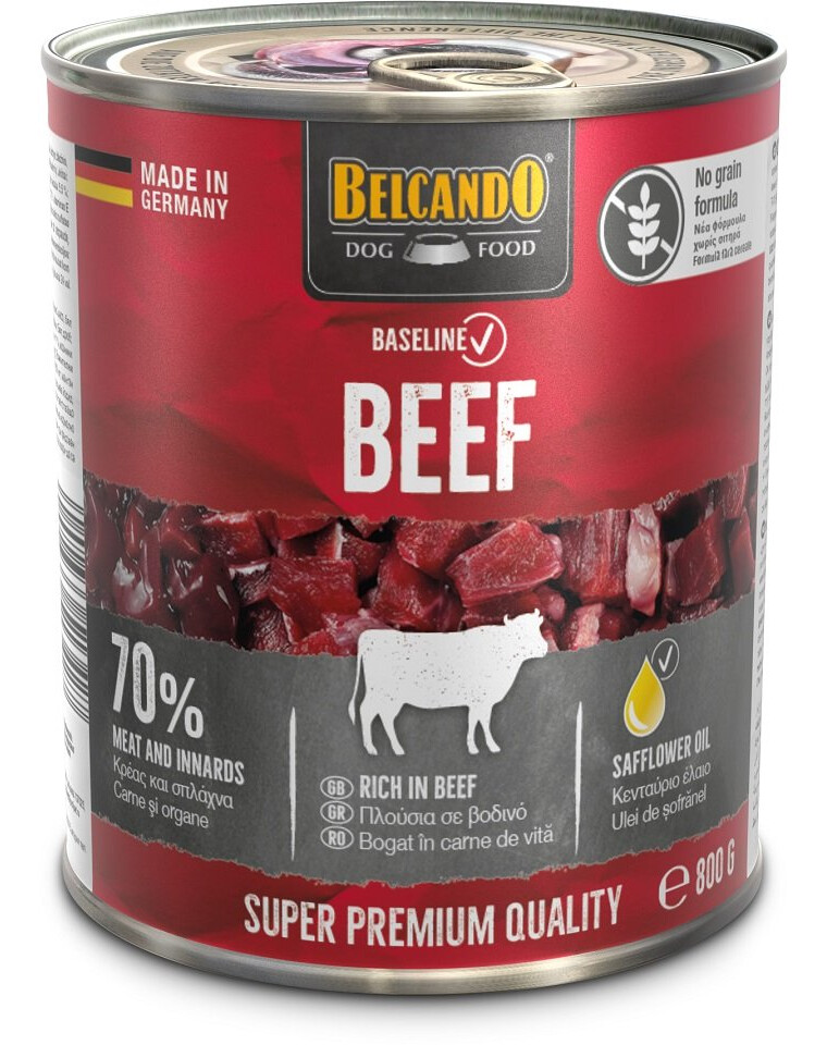 Manzo, polmoni, cuore, milza, mammella (26%); Brodo di carne (28,8%); Carne; Fegato; Stomaco; Cuore; Reni; Polmoni; Gusci d'uovo, essiccati; Minerali; Olio di cartamo (0,2%)