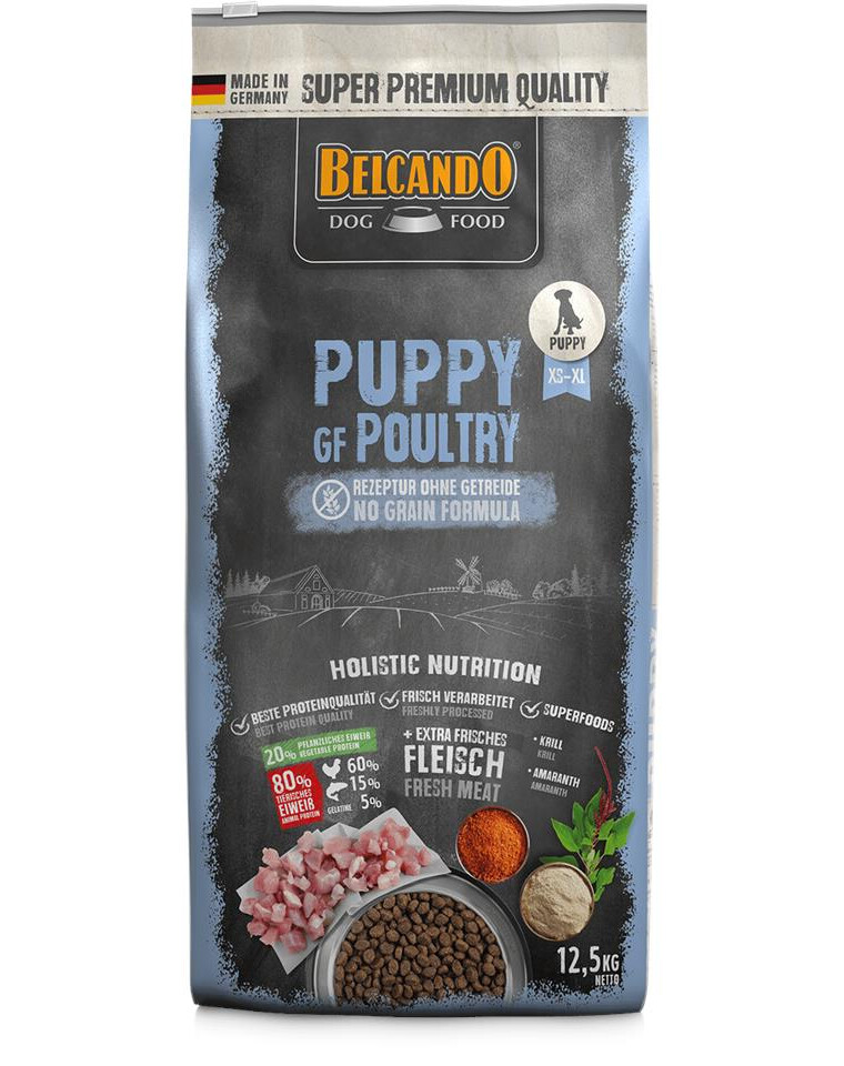 Alimento secco con pollame per cuccioli di tutte le razze fino a 4 mesi e per l'ulteriore allevamento di cani giovani di razze piccole con sensibilità ai cereali.