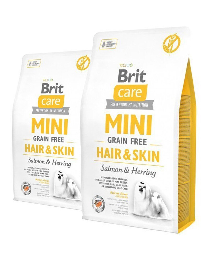 La forma dei granuli e la loro durezza sono state appositamente selezionate per le piccole mascelle dei cani di razza. Il salmone e l'aringa, ingredienti principali di questa pietanza, la rendono molto aromatica e gustosa.