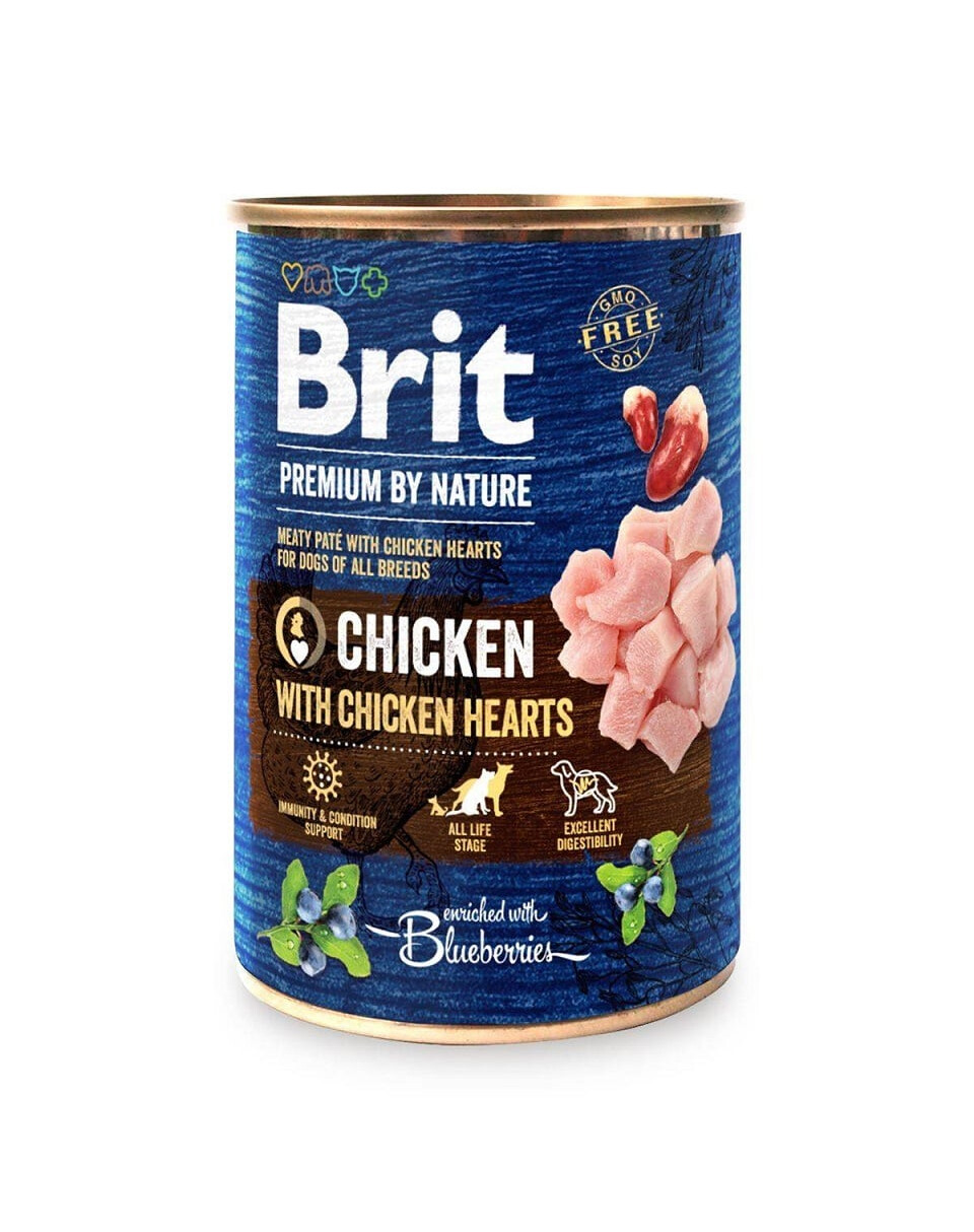 Pollo 58%, brodo di pollo 35,5%, cuori di pollo 4%, bacche 1%, minerali 1%, olio di salmone 0,5%.