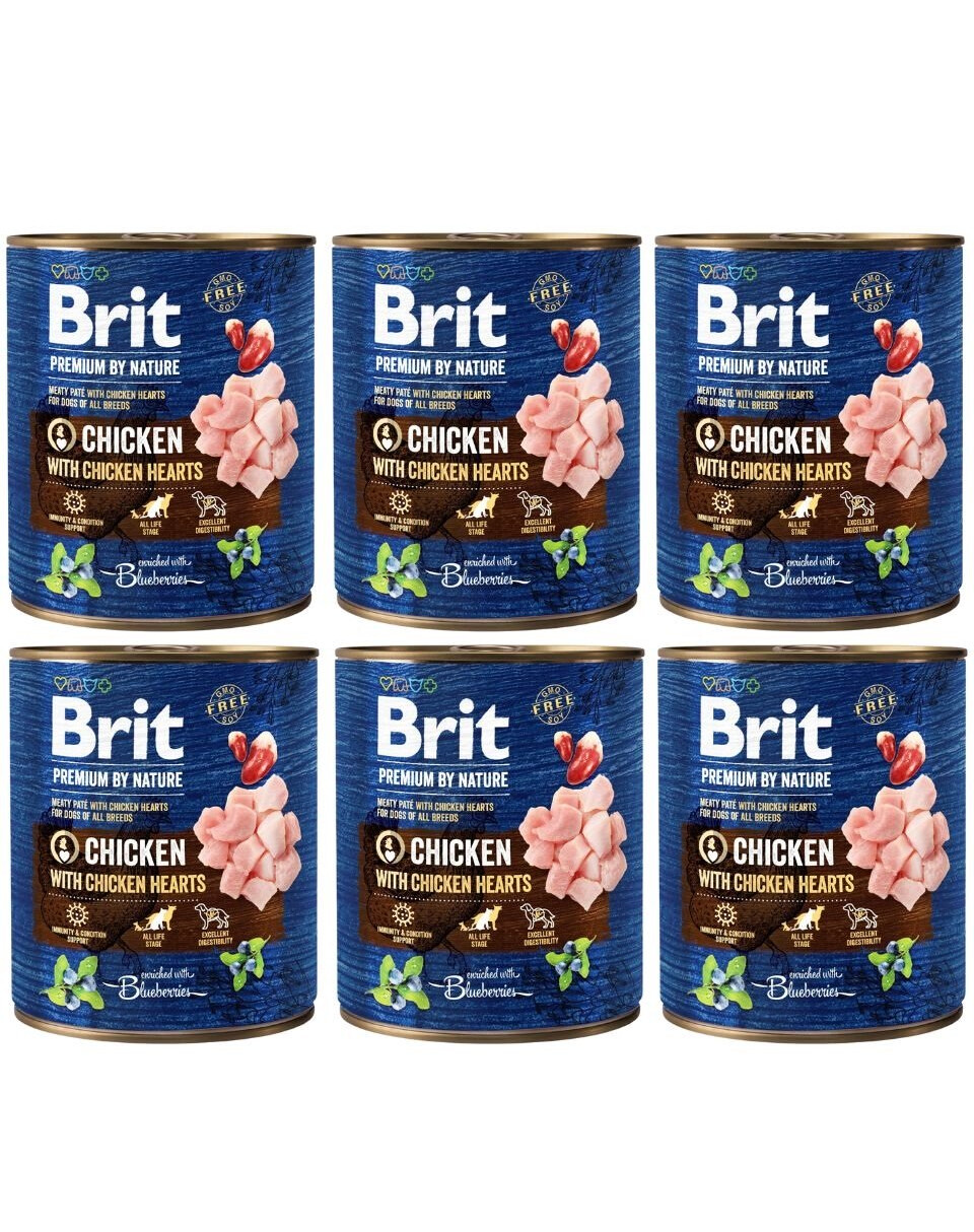 Pollo 58%, brodo di pollo 35,5%, cuori di pollo 4%, mirtilli 1%, minerali 1%, olio di salmone 0,5%.