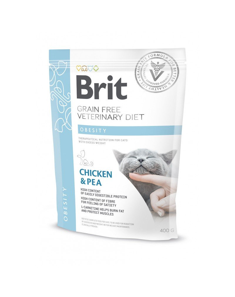 Alimento veterinario senza cereali per gatti adulti in sovrappeso.