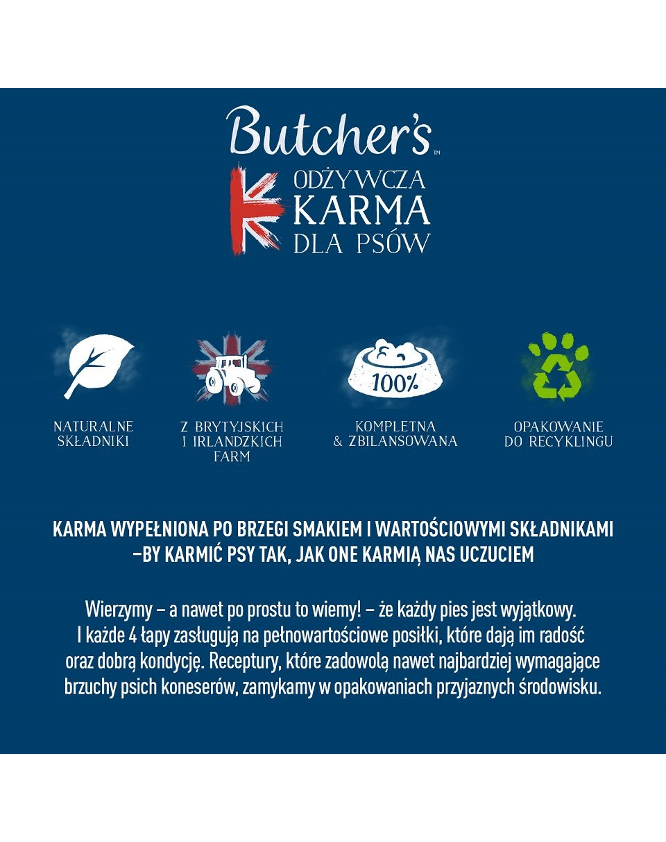 I Butcher's Original sono alimenti sviluppati per soddisfare le esigenze nutrizionali quotidiane dei cani adulti. Tutti i prodotti sono realizzati con ingredienti naturali e sono racchiusi in confezioni ecologiche.