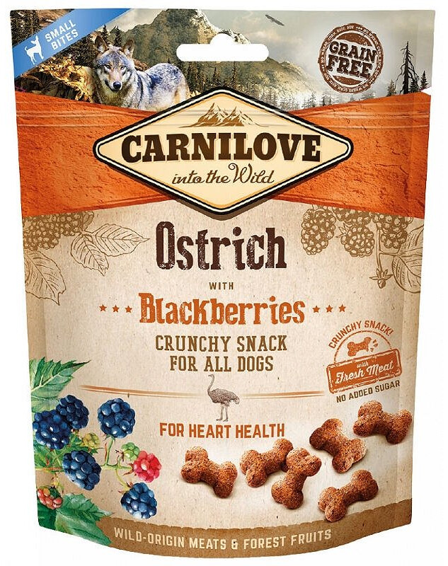 Biscotti di carne con eccezionale carne di struzzo, che ha un buon profilo aminoacidico. Contengono fino al 50% di struzzo, mentre il resto è costituito da frutta e verdura.