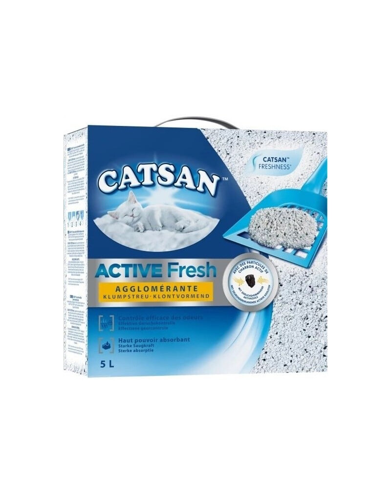 Catsan Active Fresh è una lettiera per gatti altamente assorbente e agglomerante per mantenere la toilette del gatto fresca e pulita. La lettiera è composta da argilla bianca naturale selezionata per questo scopo, che influenza l'efficace processo di agglomerazione. Il carbone attivo assorbe gli odori sgradevoli e fornisce un profumo unico e fresco alla lettiera quando è bagnata.