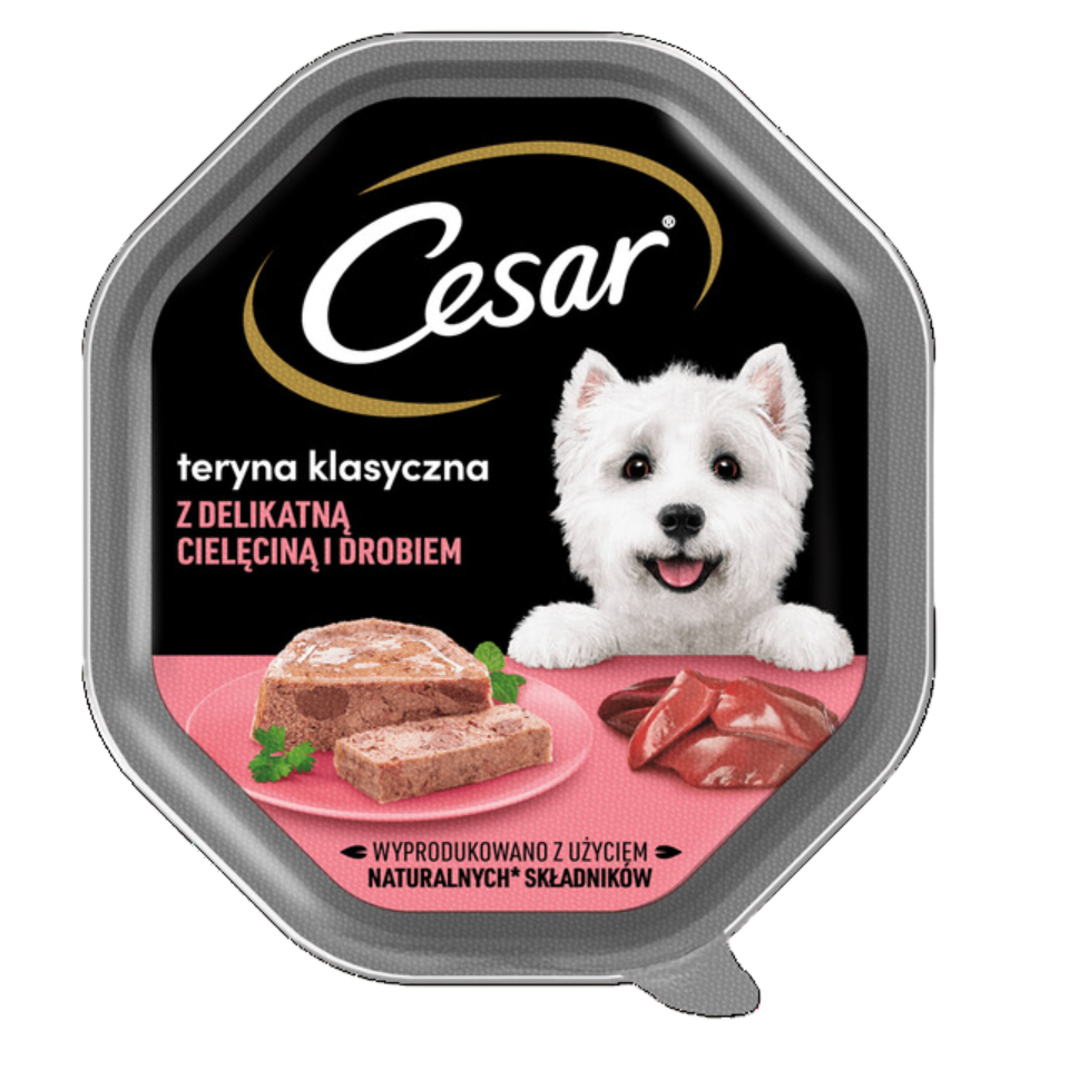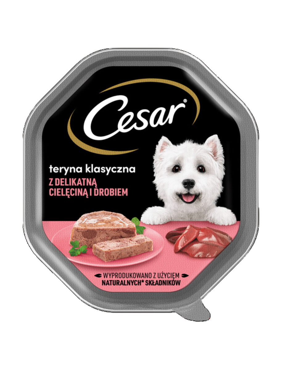 Delizioso e sano cibo Cesar con tenera carne di vitello e pollame è un cibo completo di alta qualità per cani, preparato con ingredienti naturali. La raffinata ricetta è stata attentamente sviluppata con la partecipazione di dietologi e veterinari dell'Istituto di Scienza degli Animali WALTHAM. Questo squisito cibo per cani può essere servito insieme a cibo secco o come piatto delizioso preparato in forma di gustosa terrina. Regala al tuo amico a quattro zampe il meglio, servendogli le vaschette Cesar®. Il loro sapore e aroma delizieranno il tuo animale.