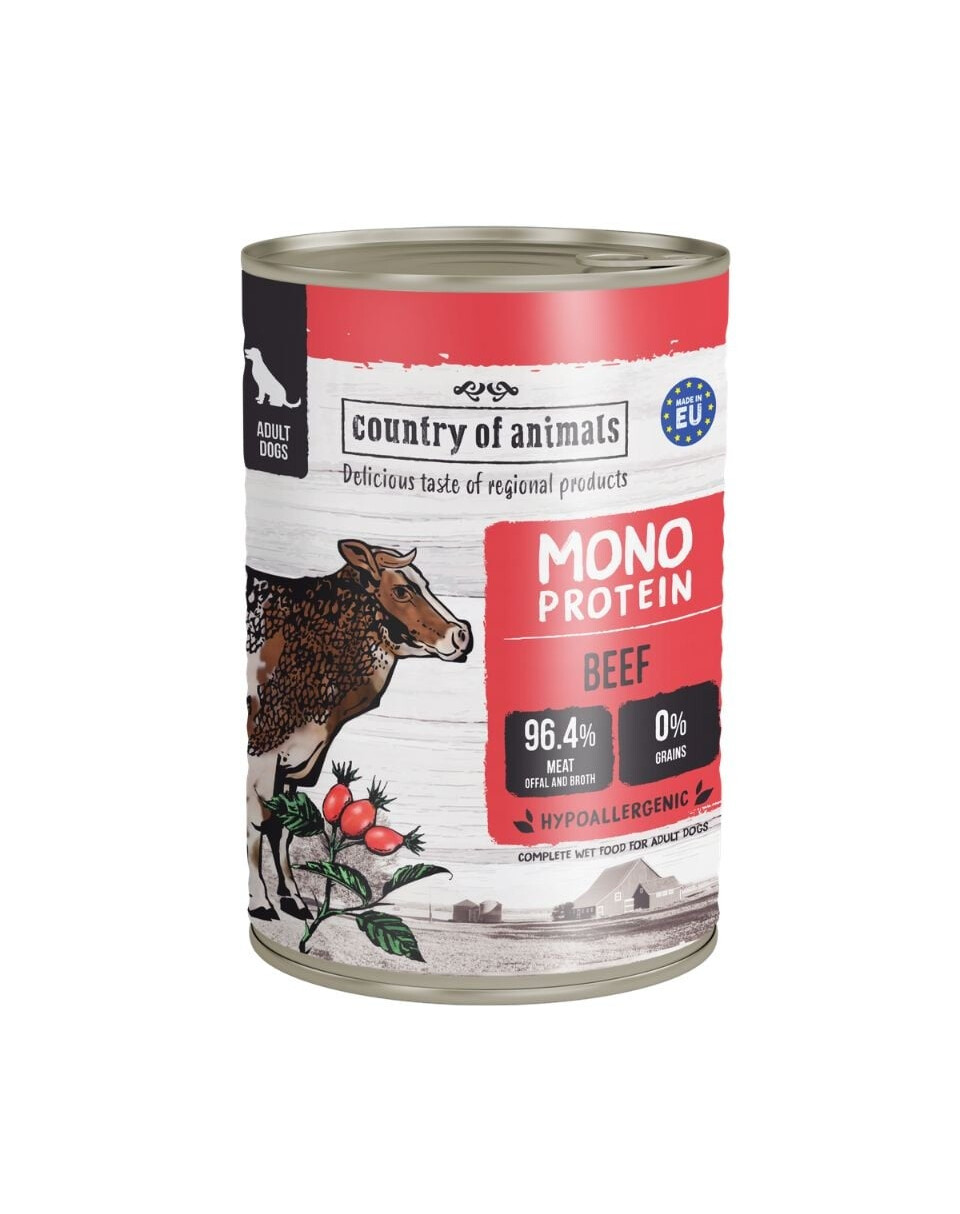 Cibo umido monoproteico Country of Animals è qualcosa di più di un semplice pasto quotidiano per il tuo amico a quattro zampe. È una vera festa, in cui il sapore unico si sposa con una composizione sana e unica, che si prende cura della salute e del delicato sistema digestivo del cane.