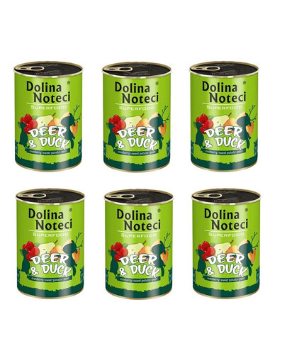 Cervo 40% (carne 20%, polmoni, fegato), anatra 40% (fegato, cuori, ventrigli, carne 5%), brodo, mirtilli rossi 3%, minerali, batata 1%, piselli 0,5%, pera 0,5%, lievito di birra secco 0,3% (fonte di prebiotici: mannanooligosaccaridi e B-glucani), semi di lino 0,1%, semi di psillio, yucca del Mojave, alghe marine, cozza dalle labbra verdi della Nuova Zelanda 0,02%, glucosamina 0,02%, condroitina solfato 0,02%.