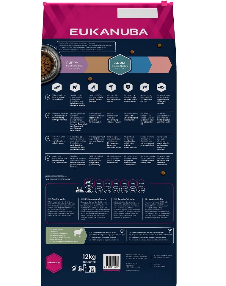 EUKANUBA Grain Free S/M Adult Agnello 12 kg per cani adulti di piccola e media taglia