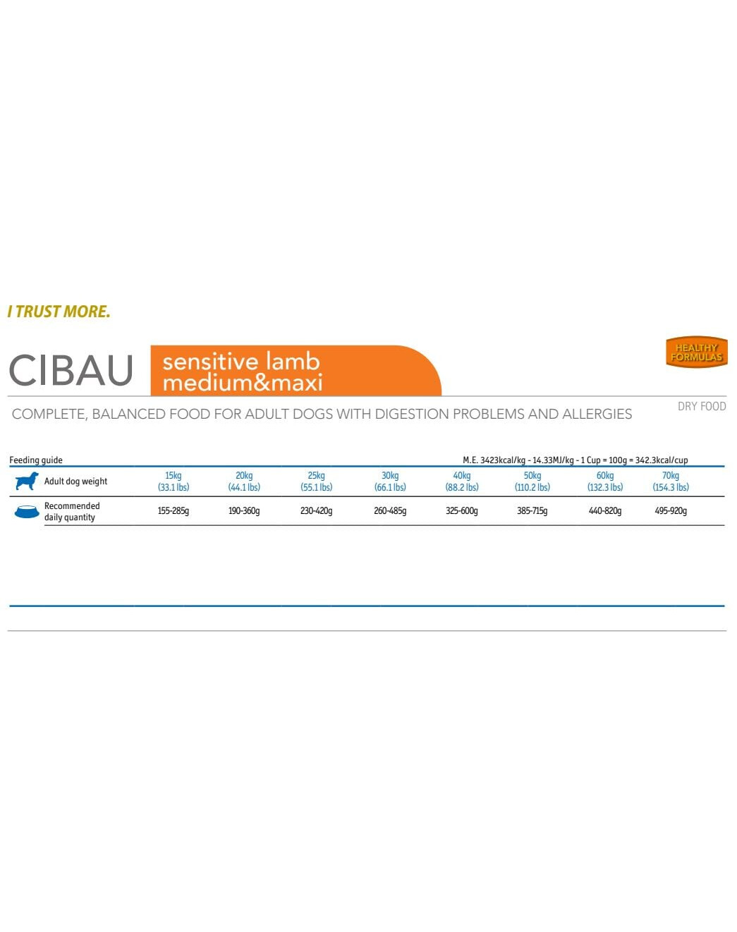 Cibau Lamb & Rice è un alimento super premium completo, bilanciato e completo per cani adulti con problemi digestivi e cani che soffrono di allergie. Progettato per cani con un tratto digestivo sensibile.