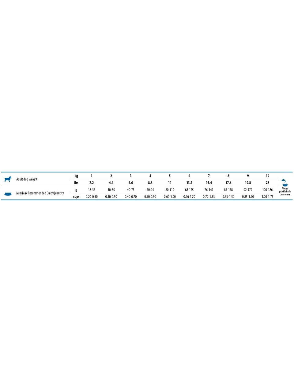 Il dosaggio fornito è indicativo e deve essere adattato al proprio animale, tenendo conto del livello di attività e dello stato di salute dell'animale.