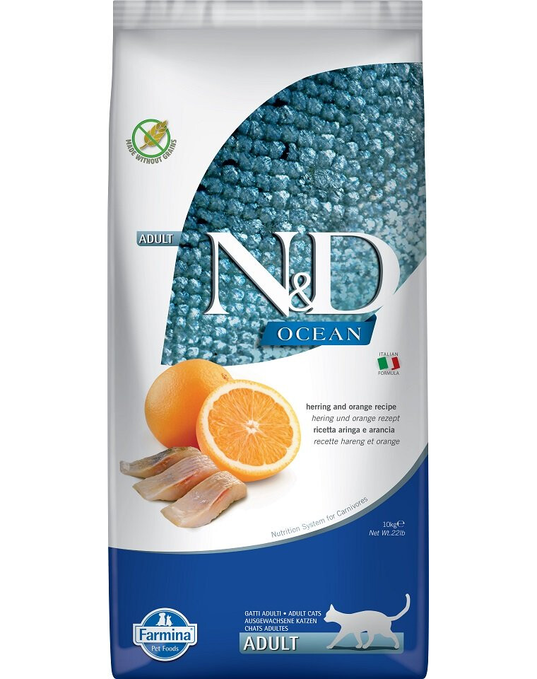 Il mangime contiene proteine animali esclusivamente provenienti dal pesce. La carne di aringa fresca ed essiccata costituisce fino al 62% della ricetta totale, garantendo una crescita sana, uno sviluppo e una buona condizione del gatto. Gli additivi presenti nel cibo sono arance e patate dolci, che hanno completamente sostituito i cereali. Forniscono una grande quantità di vitamine, principalmente C, fibre e minerali. I cereali, difficilmente digeribili e poco tollerati dai gatti, sono stati sostituiti con la zucca, che ha un basso indice glicemico.