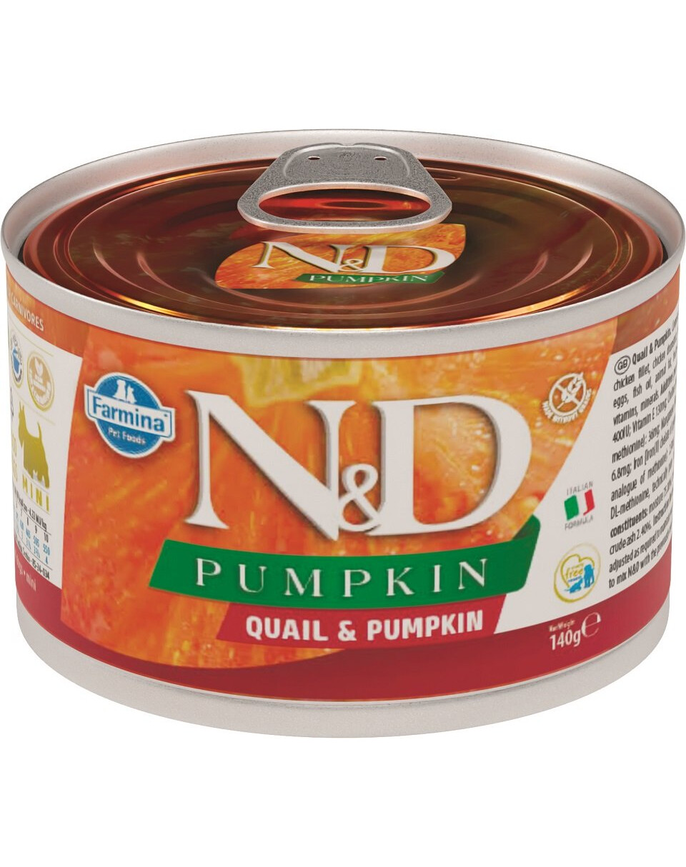 vedi tabella. È sempre necessario adattare la razione alimentare per mantenere un peso corporeo ottimale dell'animale. Nella fase iniziale di utilizzo, è consigliabile mescolare il cibo N&D con il cibo precedentemente utilizzato. Somministrare la razione giornaliera suddivisa in almeno due pasti. Servire a temperatura ambiente. Assicurarsi che l'animale abbia accesso a acqua pulita e fresca. Dopo l'apertura, conservare in frigorifero e consumare entro 48 ore.