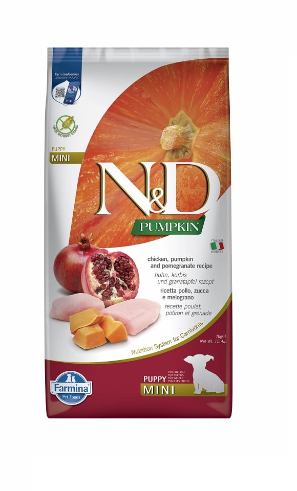 Pollo, zucca e melograno. Alimento completo per cuccioli e per cagne in gestazione o in allattamento.
