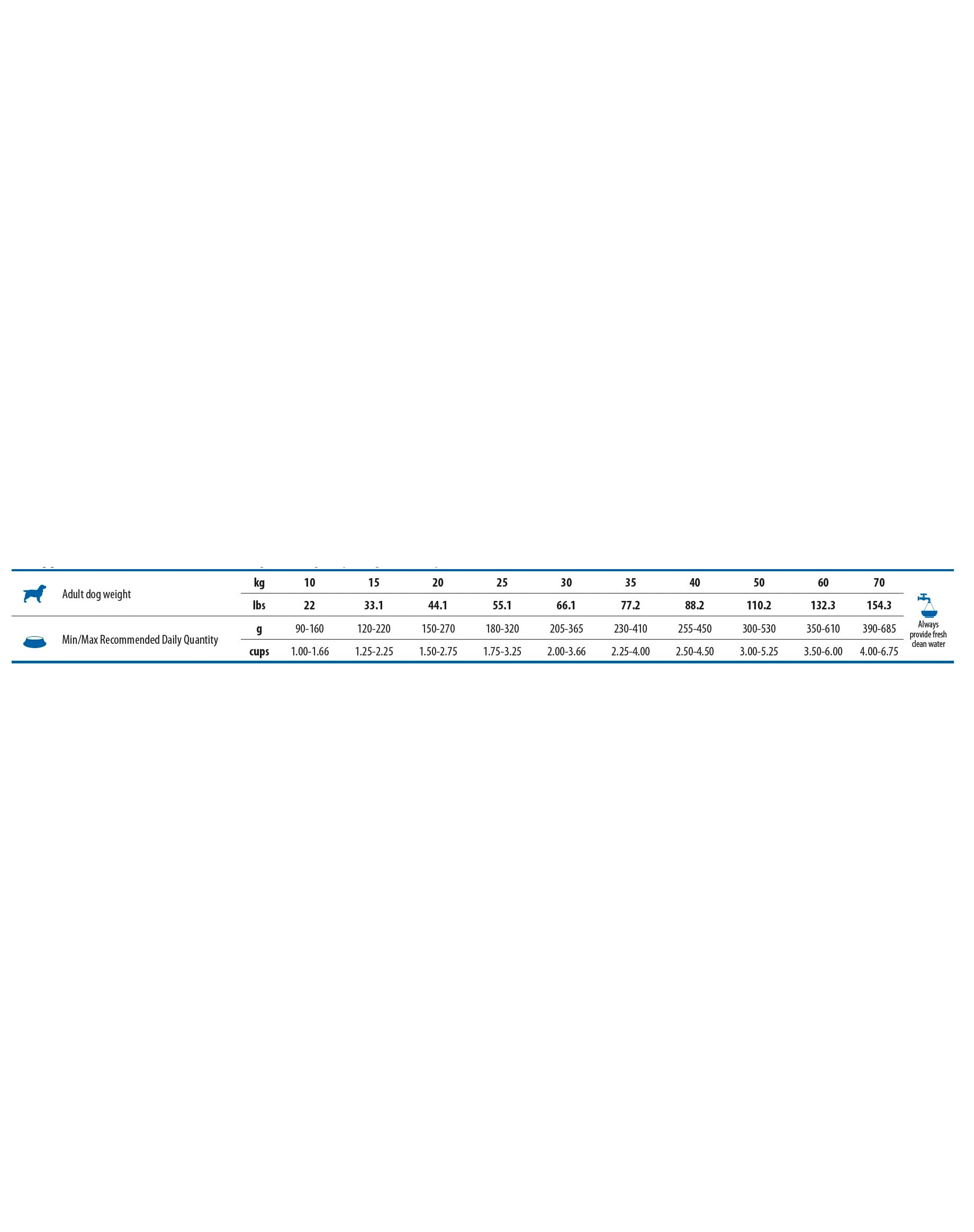 Proteina grezza 28,00%; Grassi grezzi 18,00%; Fibra grezza 2,90%; Umidità 9,00%; Ceneri grezze 8,60%; Calcio 1,10%; Fosforo 0,80%; Omega-6 3,5%; Omega-3 0,90%; Omega-3 0,5%.30%; Omega-3 0,90%; DHA 0,50%; EPA 0,30%; Glucosamina 1200mg/kg; Condroitinsolfato 900mg/kg.