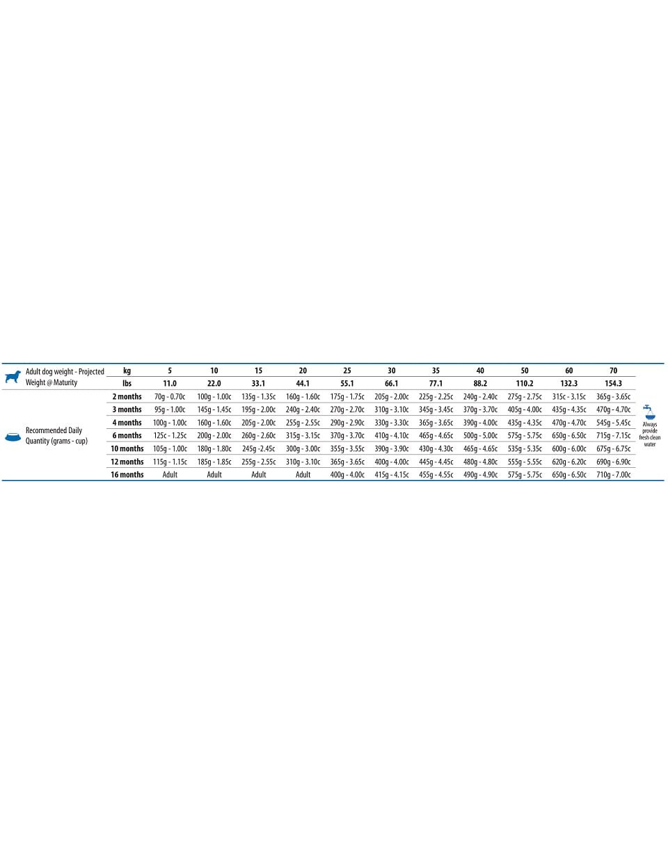 Il dosaggio fornito è indicativo e deve essere adattato al proprio animale, tenendo conto del grado di attività e dello stato di salute dell'animale.