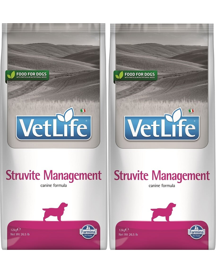 Farmina Vet Life Struvite Management è un alimento dietetico completo per cani indicato per ridurre la formazione di calcoli di struvite.