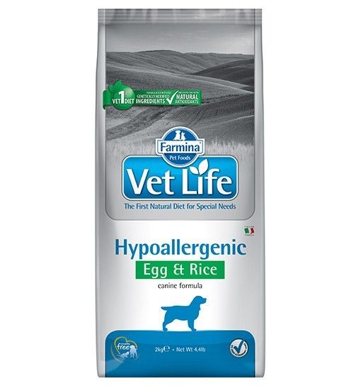 Farmina Vet Life Hypoallergenic Egg & Rice è un alimento dietetico completo per cani per ridurre le intolleranze ad ingredienti e sostanze nutritive; supportare le funzioni cutanee in caso di dermatosi ed eccessiva caduta dei capelli.
