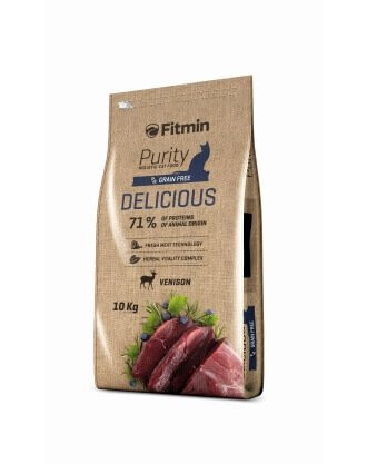 Fitmin Purity Delicious è un alimento completo per gatti adulti, con un contenuto di proteine di origine animale pari al 71%.