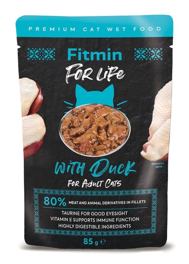Composizione: carne e derivati animali (80% nei filetti, di cui 11,6% anatra), estratti di proteine vegetali, sottoprodotti vegetali (0,4% inulina), sostanze minerali, zuccheri.
