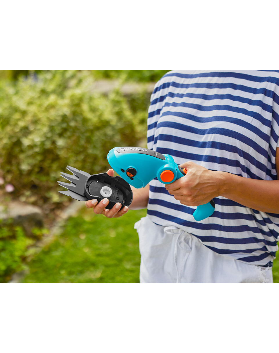 Le forbici per la rifinitura dei bordi dei prati e per la potatura degli arbusti presentano un design snello. L'impugnatura ergonomica si adatta comodamente alla mano e può essere regolata all'angolo appropriato per ottenere la migliore posizione di lavoro. Le forbici ComfortCut Li pesano solo 600 grammi, permettendoti di lavorare con facilità.