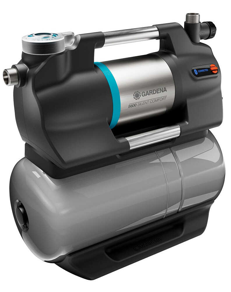 Uno di questi è il GARDENA 5600 SilentComfort Set idropotente, che è la soluzione ideale per l'approvvigionamento automatico d'acqua per la casa e il giardino. La pompa pressurizzata offre una potenza molto elevata con un'altezza di sollevamento di 47 m (4,7 bar) e una portata di 5600 l/h. L'elevata efficienza dell'apparecchio si riflette nel modesto consumo energetico di soli 900 W. La pompa può pompare acqua da una profondità di fino a 8 metri.