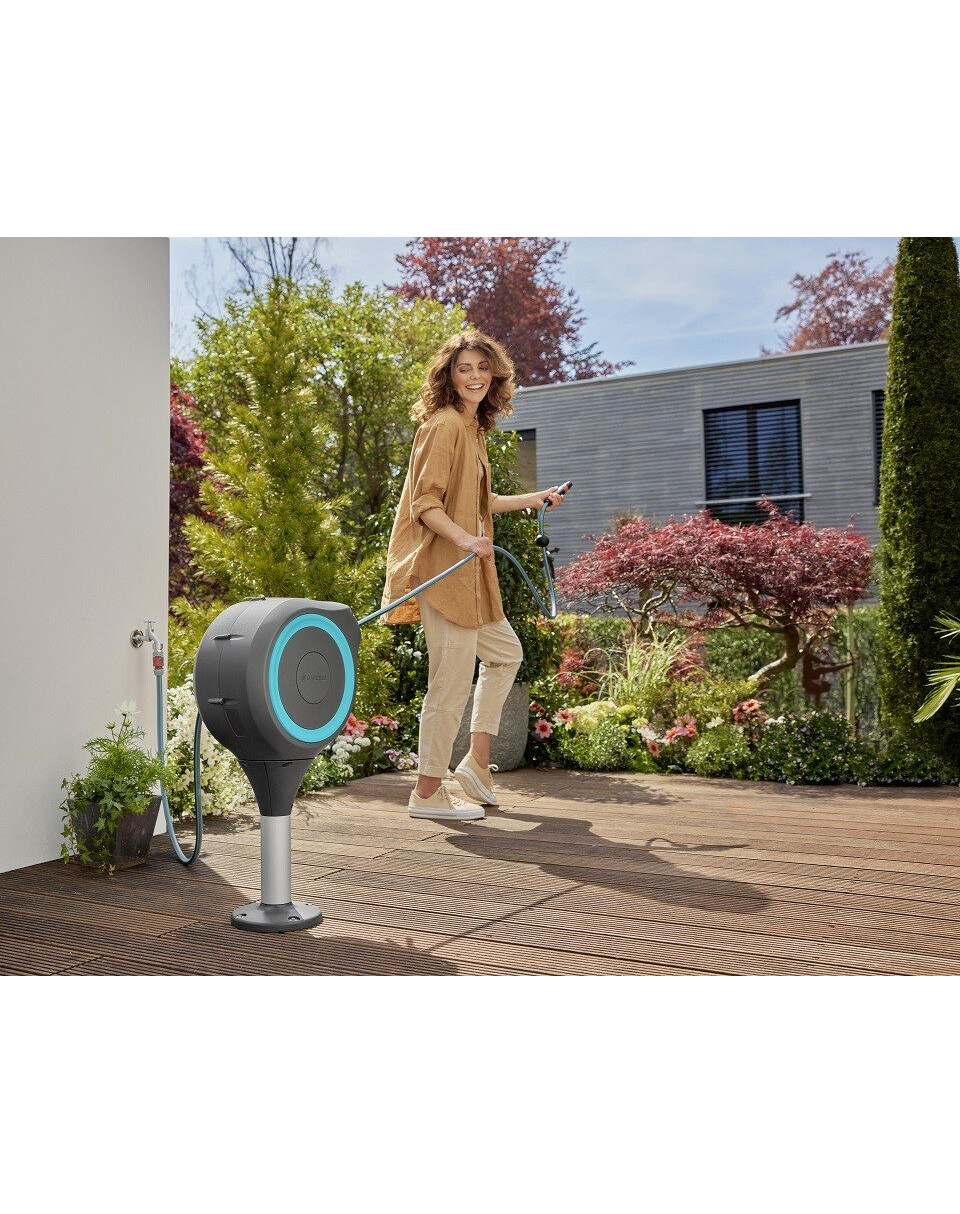 L'avvolgitubo RollUp S può essere posizionato in qualsiasi punto del giardino e ruota di 360°. Con questo tubo è possibile raggiungere facilmente ogni angolo del giardino, mantenendo la massima libertà di movimento durante l'irrigazione.