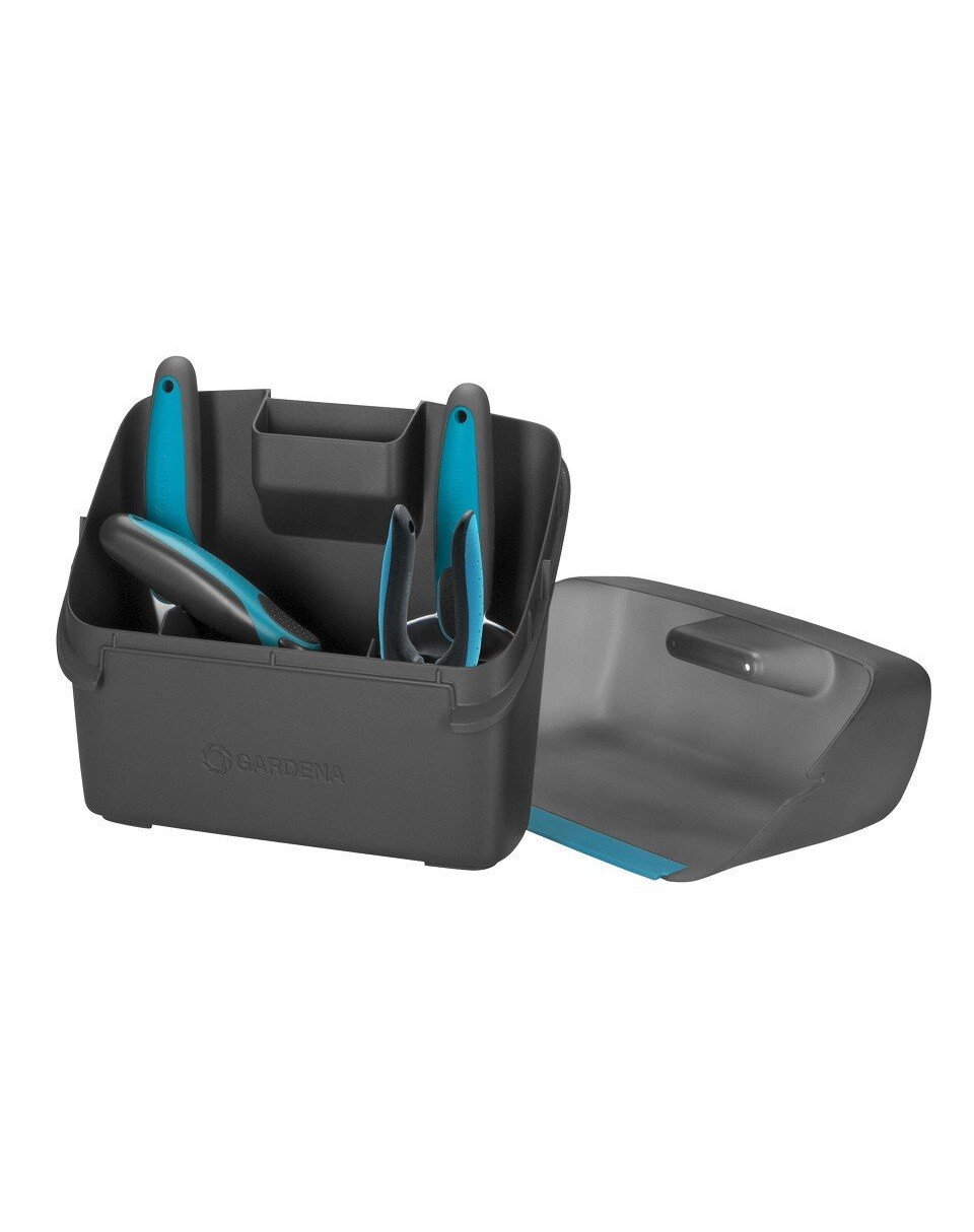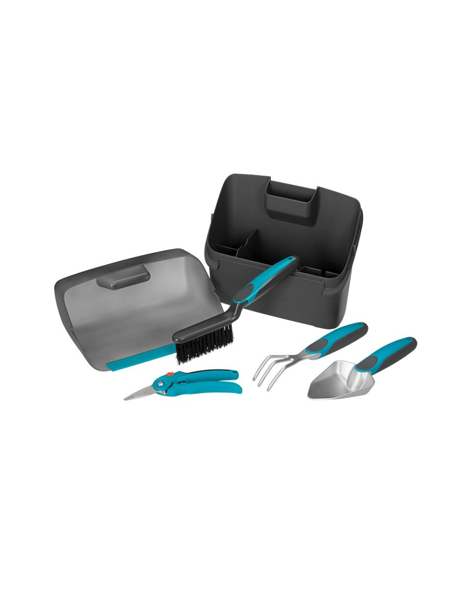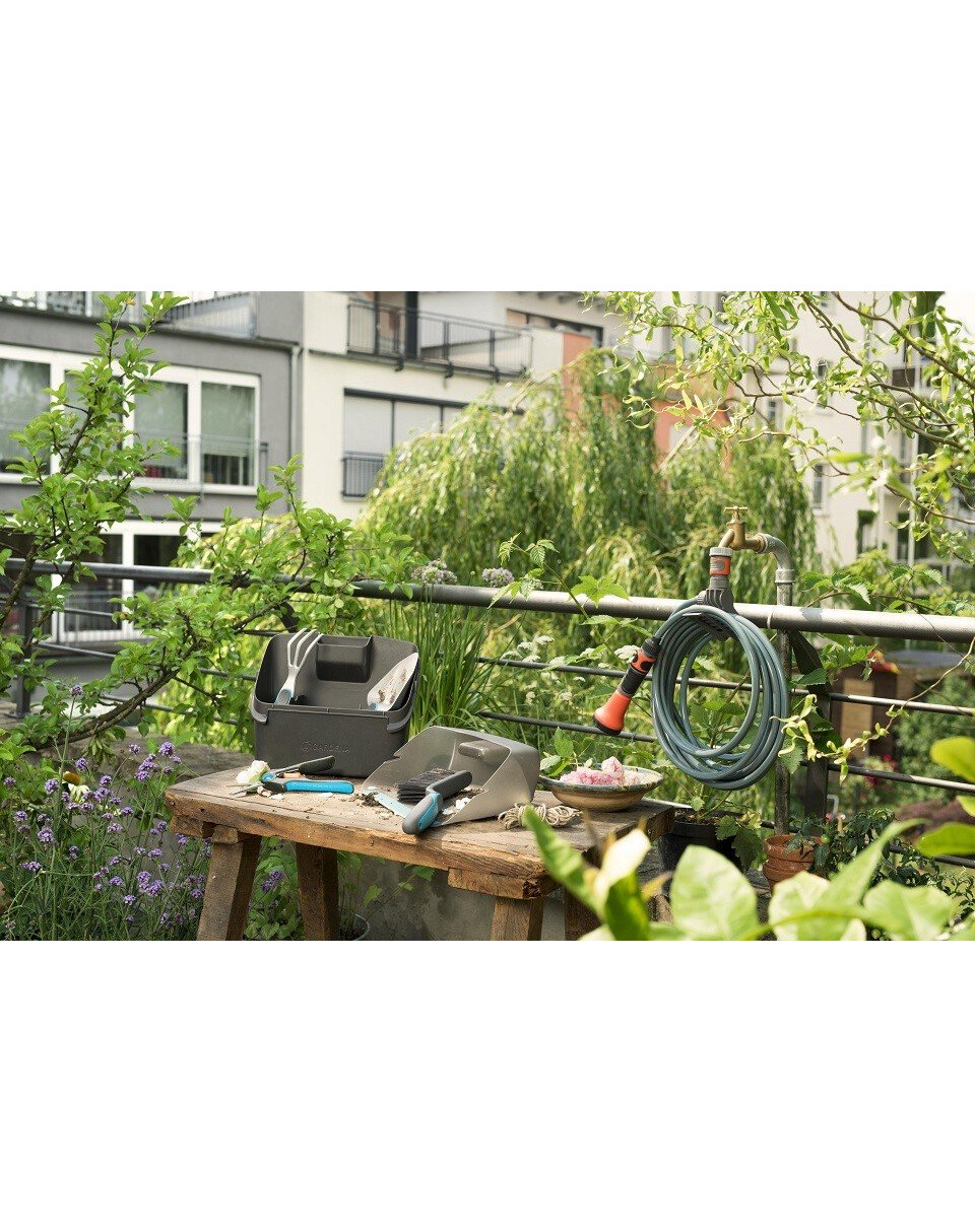 Il set di attrezzi da giardinaggio per balcone City GARDENA è un set indispensabile per la cura delle piante: piantare, trapiantare, allentare il terreno, tagliare fiori ed erbe e pulire balconi e terrazze. Include una cassetta multifunzionale con coperchio che funge anche da paletta. Il set comprende una pala da fiori, una paletta, le forbici da potatura e una scopetta.