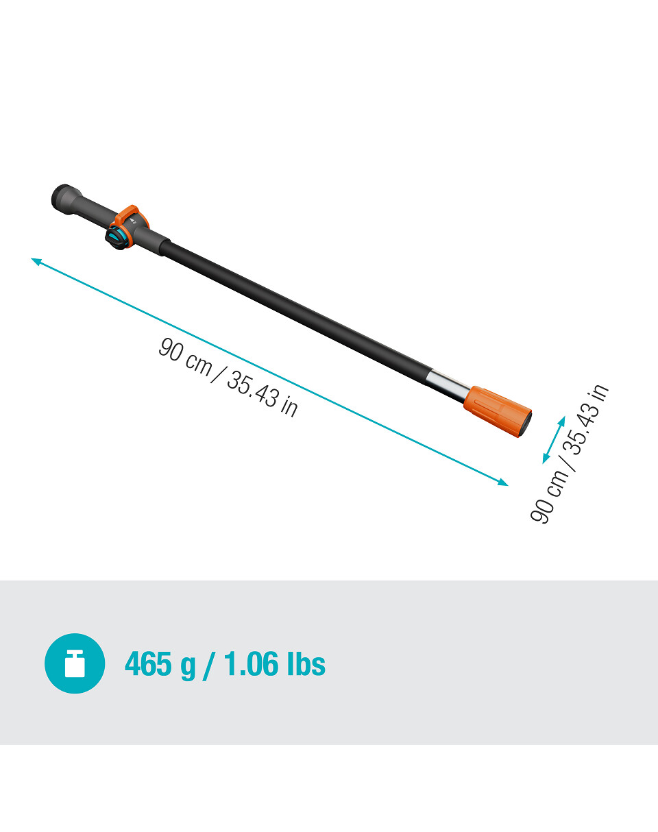 L'impugnatura aumenta la portata di lavoro di 90 cm. Questo rende la pulizia di superfici verticali, come recinzioni da giardino, serre o porte del garage, molto più semplice. L'impugnatura è realizzata in alluminio di alta qualità e resistente. È facile da usare e grazie a un rivestimento speciale non conduce calore anche a basse temperature.