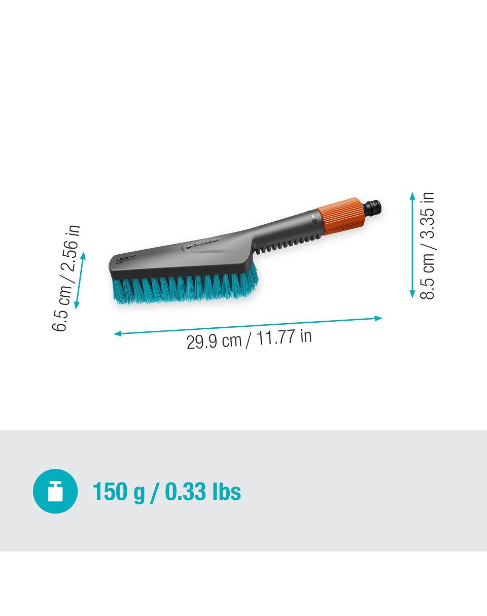 Le setole rigide della spazzola sono state sviluppate appositamente per tutte le superfici esterne meno delicate. Ideale per una pulizia accurata di piccole ma dure superfici su balconi, terrazze o giardini. Grazie alla spazzola dura che conduce l'acqua, rimuoverai sporco denso e ostinato in un attimo.