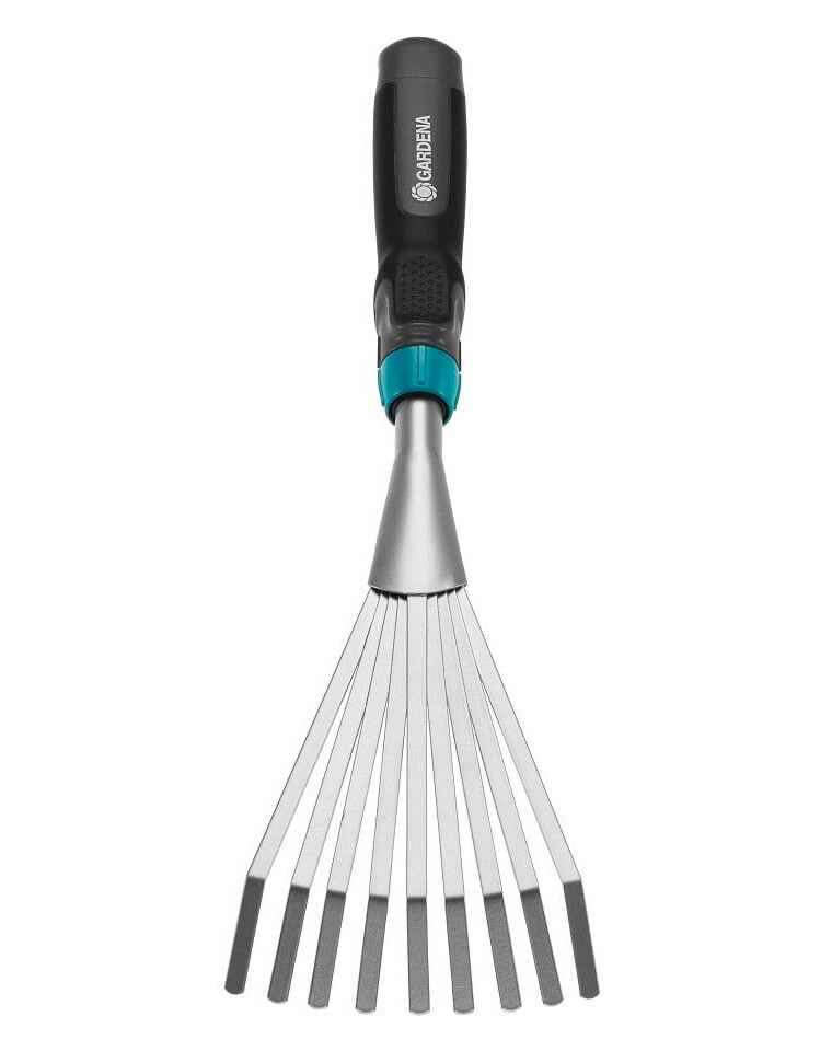 Ilrastrello Comfort GARDENA è l'attrezzo perfetto per rastrellare foglie, erbacce ed erba tagliata da aiuole, vasi e aree difficili da raggiungere. Il manico ergonomico con elementi morbidi e antiscivolo assicura un lavoro comodo e confortevole. La larghezza del rastrello è di 12 cm. Sono realizzati in acciaio di alta qualità e rivestiti in plastica termoindurente per garantire una lunga durata del prodotto.