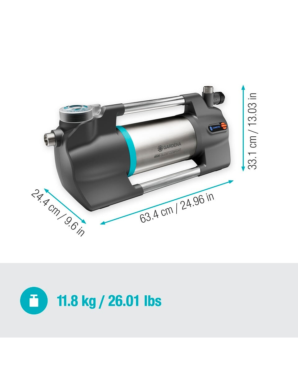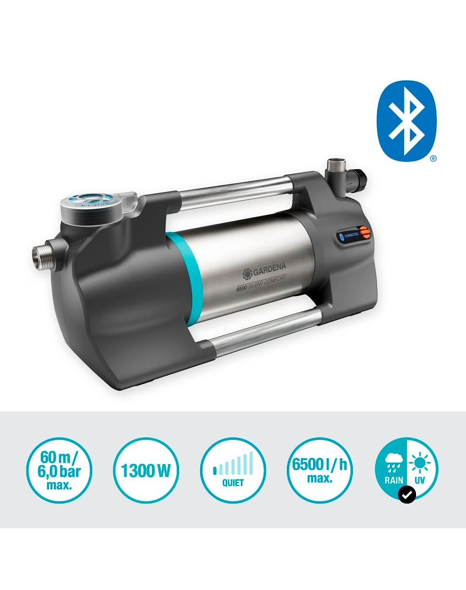 La pompa da giardino Gardena 6500 SilentComfort è la pompa più potente e silenziosa con controllo dell'irrigazione via Bluetooth.