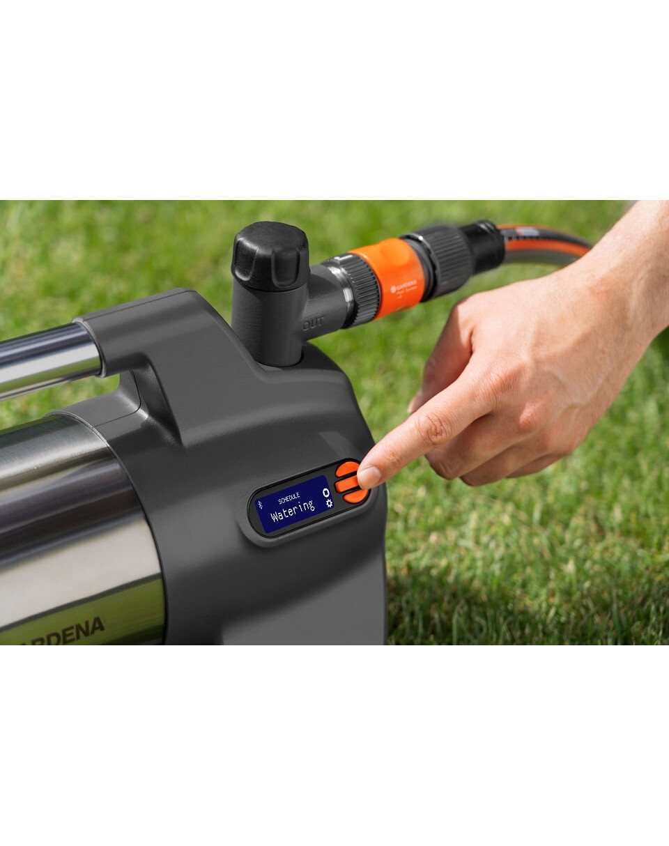 La pompa è straordinariamente efficiente dal punto di vista energetico e garantisce le migliori prestazioni della categoria. Grazie al suo sistema idraulico ad alta efficienza, consuma 1300 W di energia e fornisce una portata incredibile di 6500 l/h e un'altezza di sollevamento di 60 m (6 bar). Può essere utilizzato per raccogliere l'acqua piovana da cisterne, pozzi o cisterne fino a una profondità di 8 metri. Grazie al suo innovativo funzionamento multistadio e al raffreddamento ad acqua, questa pompa SilentComfort tedesca è eccezionalmente silenziosa, con un livello di pressione sonora di soli 46 db(A) a una distanza di 5 m. Questa tecnologia non richiede una ventola, poiché il calore viene dissipato nell'acqua. Ciò garantisce la massima efficienza e livelli di rumorosità minimi. Ad eccezione della creazione di un programma di irrigazione, tutte le funzioni possono essere impostate tramite lo schermo LCD retroilluminato del dispositivo, che consente anche di accenderlo e spegnerlo. Questo blocco impedisce ai bambini di avviare accidentalmente la pompa. Grazie alla connettività Bluetooth è possibile controllare la pompa da una distanza massima di 10 m e utilizzare le funzioni aggiuntive disponibili. Inoltre, è possibile impostare programmi e timer di irrigazione e ricevere promemoria per le imminenti pulizie del filtro. Quando accendi la pompa per la prima volta, le istruzioni dettagliate nell'app ti aiuteranno a preparare la pompa per l'uso. La possibilità di combinazione con il tester di umidità del terreno GARDENA (art. n. 1867-20) garantisce un'irrigazione ottimale delle vostre piante senza sprecare acqua. Le pompe SilentComfort sono progettate per l'uso all'aperto e possono quindi essere conservate all'aperto per tutta la stagione. Non è influenzato negativamente dalle piogge persistenti o dall'elevata umidità (ad esempio sotto forma di nebbia), il che consente di posizionarlo vicino a fonti d'acqua. I piedini in gomma resistenti ne garantiscono la stabilità. La protezione contro il funzionamento a secco, abbinata alla protezione dal surriscaldamento e al prefiltro integrato, impedisce alle particelle di sporco di penetrare nella pompa o nel dispositivo di mandata, garantendone una lunga durata. La pompa a pressione è molto durevole grazie all'impiego di materiali di alta qualità, come l'alloggiamento in acciaio inossidabile e l'impugnatura in alluminio. Serbatoi come pozzi e cisterne per l'acqua piovana possono far risparmiare preziosa acqua dolce. Fa bene al portafoglio e all'ambiente, soprattutto durante i mesi secchi estivi. La pompa da giardino è dotata di una guarnizione in ceramica con sistema di doppia tenuta e di un albero in acciaio inossidabile tra l'impianto idraulico e il motore. Anche la bocca di aspirazione e le due uscite (una delle quali ruotabile di 180°) sono realizzate in acciaio inox. È possibile utilizzare più dispositivi contemporaneamente. L'ampia apertura di riempimento e la valvola di scarico facilitano notevolmente il riempimento della pompa e la proteggono dal congelamento.