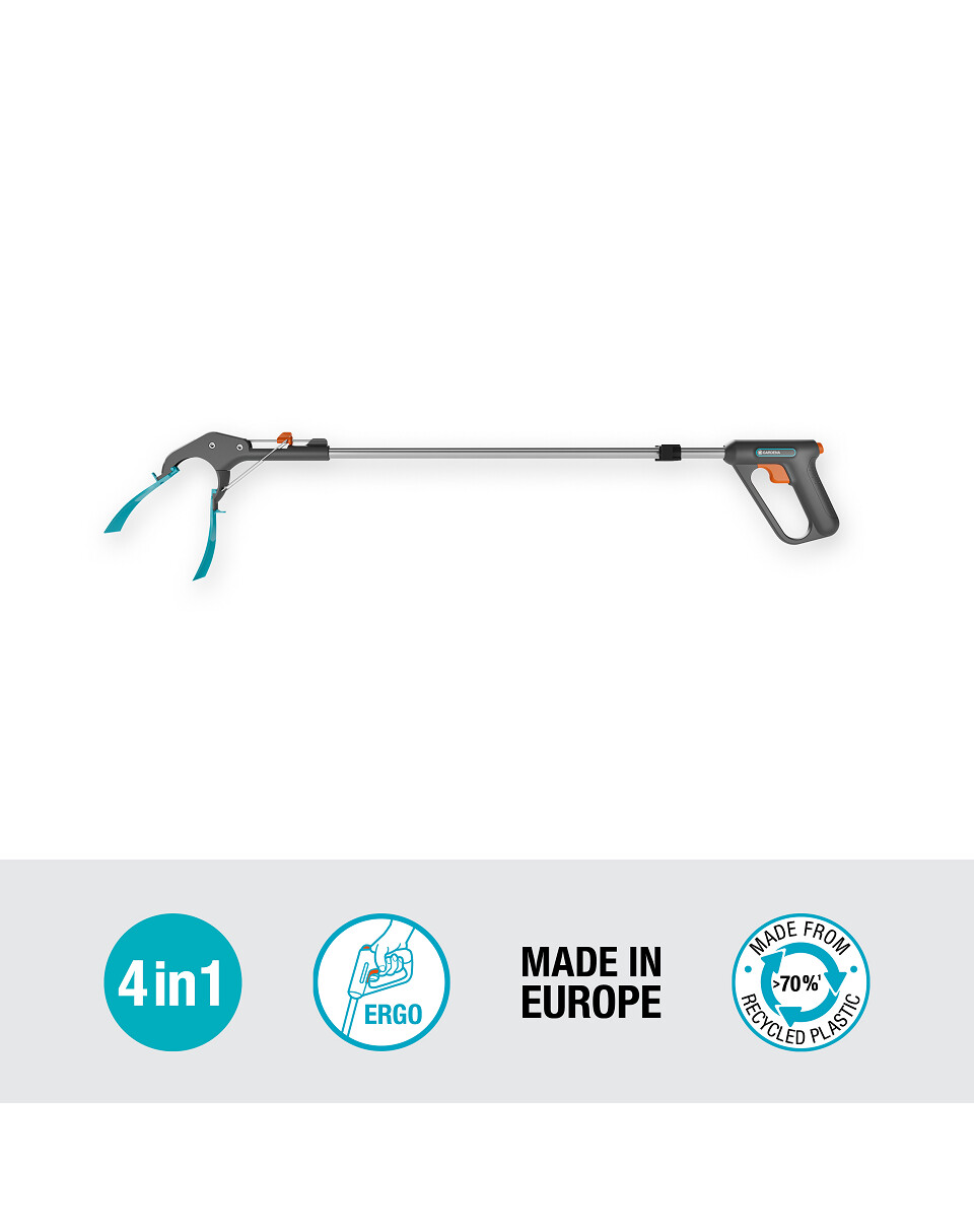 Il raccoglitore GARDENA 4 in 1 è stato progettato per un lavoro ergonomico in giardino ed è ideale per raccogliere rifiuti nel giardino e nei dintorni.