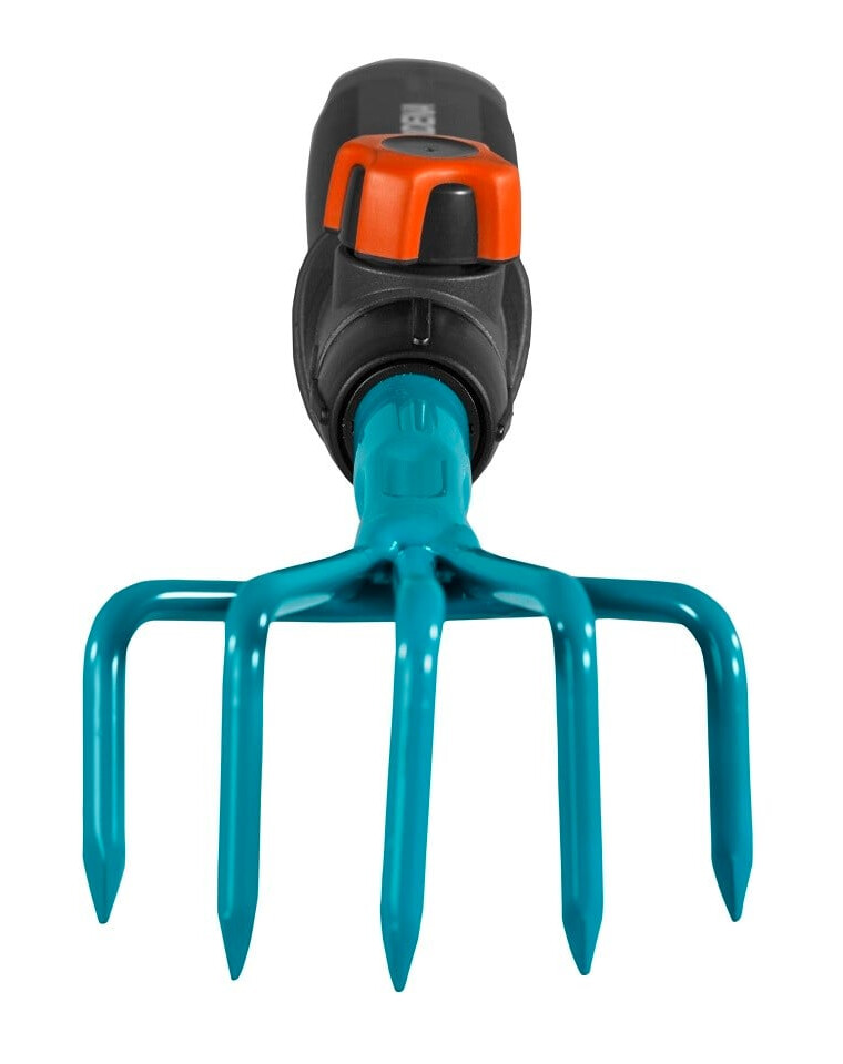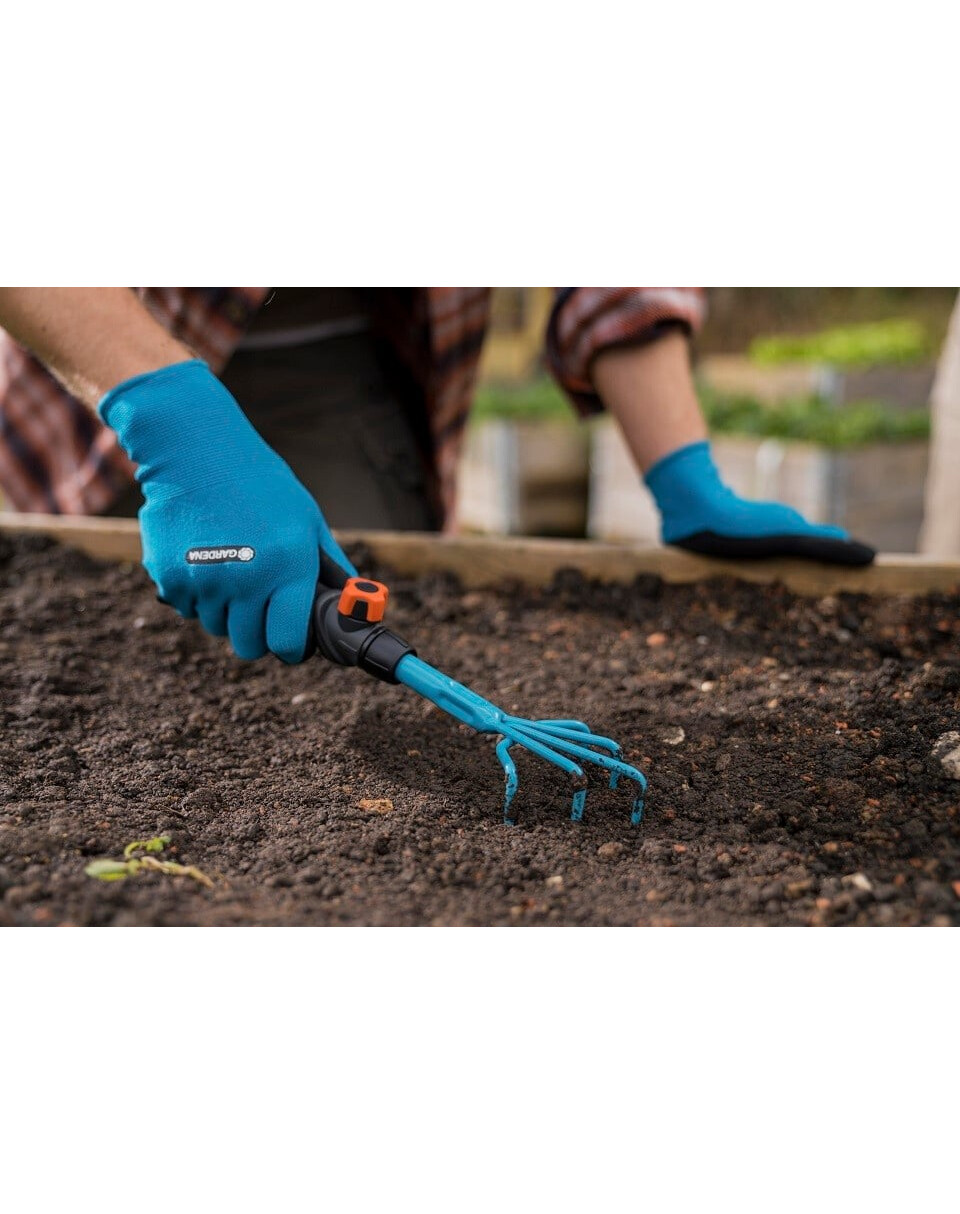 Con ipiccoli artigli combisystem GARDENA è possibile allentare facilmente il terreno. Grazie agli attrezzi intercambiabili, il combisystem GARDENA offre flessibilità d'uso. Il piccolo artiglio è compatibile con tutti i manici combisystem GARDENA e può essere facilmente agganciato al manico. Per lavorare comodamente e senza chinarsi, è sufficiente rimuovere il manico e sostituirlo con quello del Combination System. La prolunga Combisystem è ideale per allungare gli attrezzi manuali. Il collegamento sicuro tra l'artiglio e l'impugnatura garantisce un lavoro confortevole in qualsiasi situazione. L'impugnatura ergonomica con componenti morbidi si adatta perfettamente alla mano e, grazie alle sue curve, impedisce all'utensile di scivolare. I piccoli artigli, larghi 7 cm, sono realizzati in acciaio di alta qualità. Il rivestimento in plastica termoindurente garantisce una lunga durata del prodotto. Per risparmiare spazio per riporre gli artigli, è possibile utilizzare il gancio per utensili combisystem Flex.