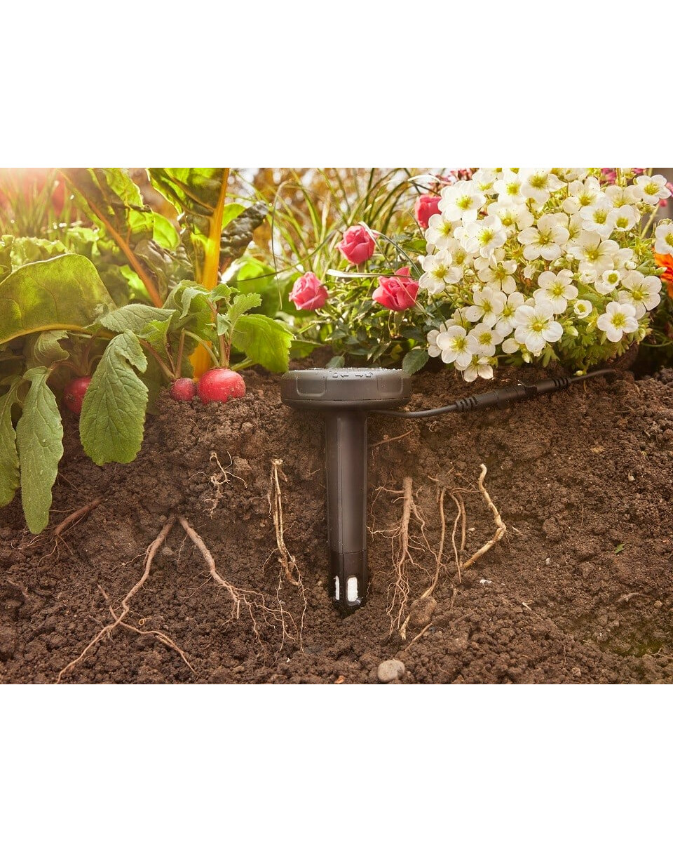 Nelle aiuole, nei prati o anche nelle fioriere: il design piccolo e compatto e il cavo di 5 metri permettono di posizionare il sensore di umidità del terreno praticamente ovunque in giardino. L'altezza ridotta e la parte superiore piatta consentono di montare il sensore sul prato senza interferire con il funzionamento del tosaerba.