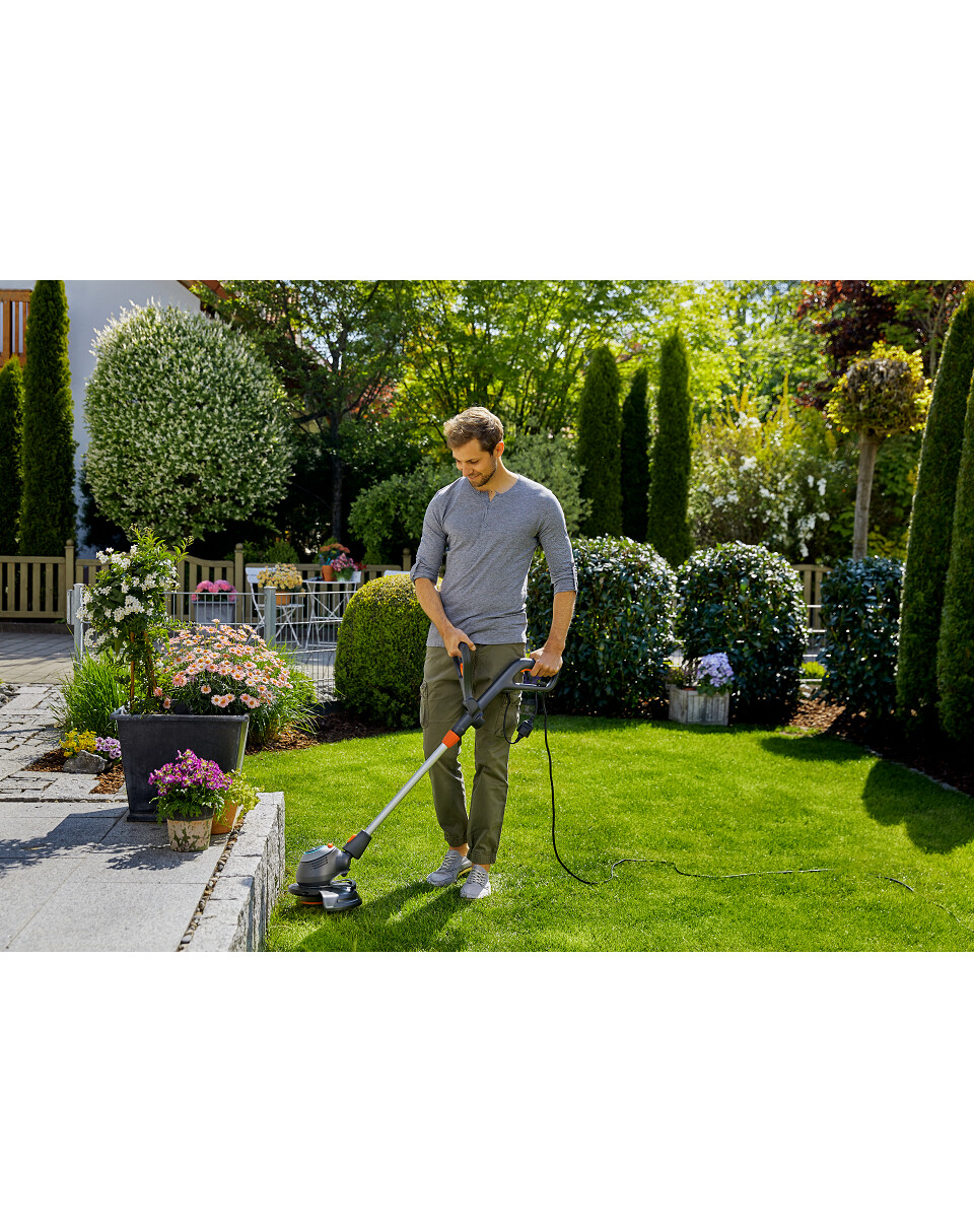Grazie alla funzione di bordatura, puoi tagliare in verticale per definire con precisione i bordi dei sentieri e dei aiuole e lungo le recinzioni.