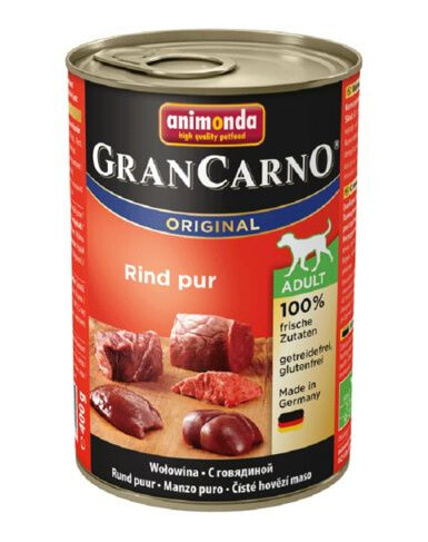 GranCarno Adult Carne di pura qualità senza aggiunta di cereali o soia, priva di coloranti e sostanze aromatizzanti. Per un gusto puro e senza fronzoli.