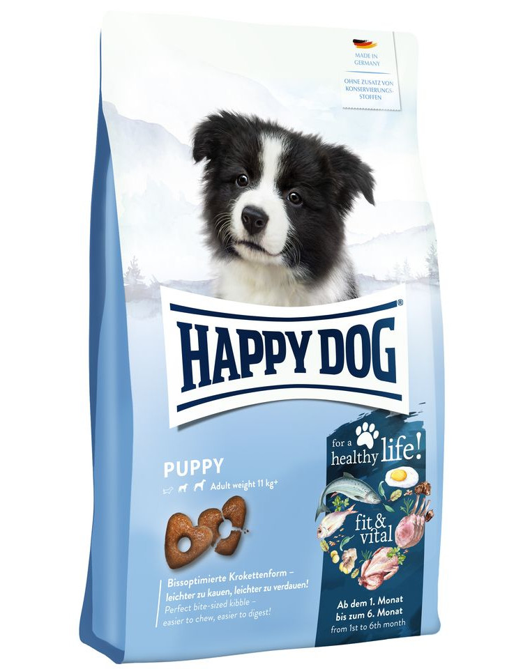 Happy Dog fit & vital Puppy è ideale per i cuccioli a partire dal primo mese di età. Il cibo vitale, gustoso e sano, si basa su un concetto unico e sostiene lo sviluppo dei cani. La ricetta senza frumento contiene anche preziosi acidi grassi essenziali e vitamina C per sostenere il sistema immunitario.