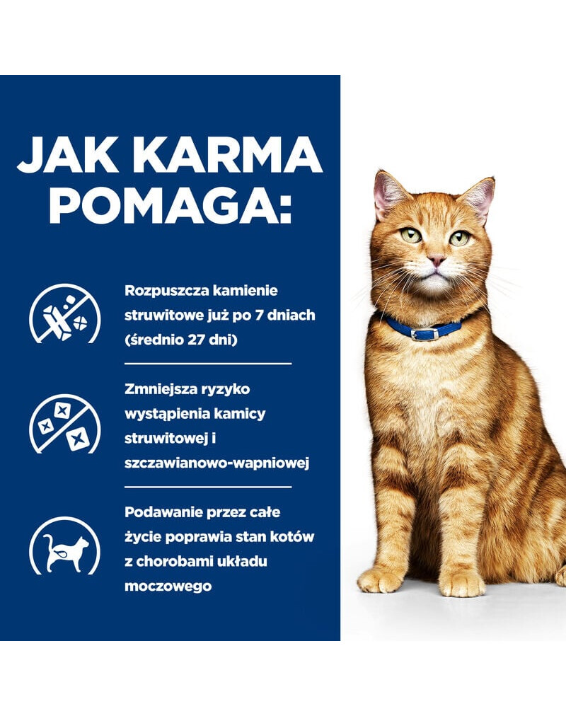 Nutrizione che riduce significativamente l'incidenza dei comuni sintomi del tratto urinarioDissolve i calcoli urinari di struvite in soli 7 giorni (in media 27 giorni)Riduce il rischio di calcoli di struvite e ossalato di calcioLa nutrizione permanente offre benefici ai gatti con sintomi del tratto urinario.