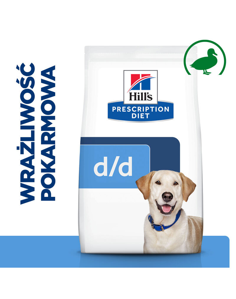 Prescription Diet™ Canine d/d™ Duck and Rice è formulato per la gestione dietetica dei cani con qualsiasi disturbo dermatologico e vomito/diarrea causati da allergia.